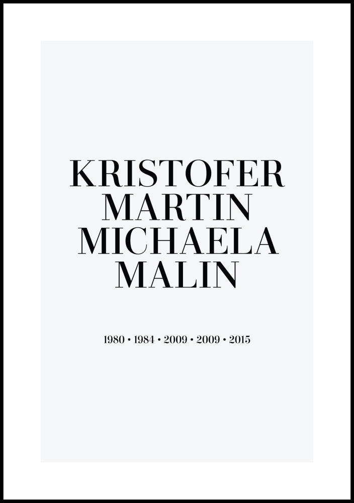 Tableau de famille - 4 noms et années de naissance - Gris (30x40 cm)