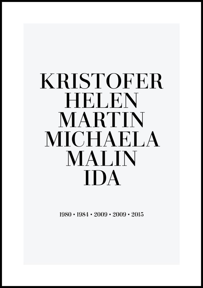 Tableau de famille - 6 noms et années de naissance - Gris (21x29,7 cm (A4))