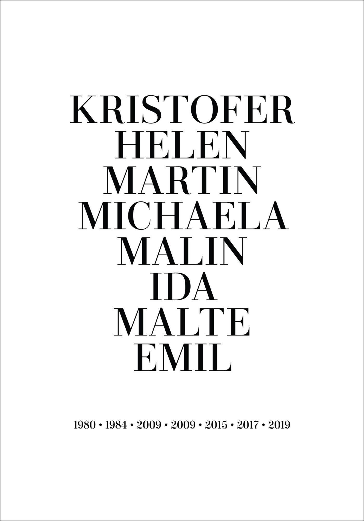 Tableau de famille - 8 noms et années de naissance - Blanc (21x29,7 cm (A4))