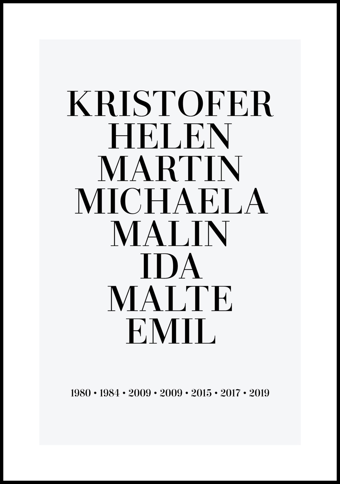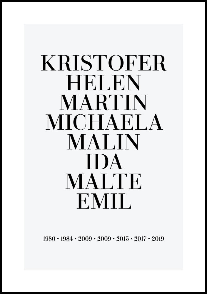 Tableau de famille - 8 noms et années de naissance - Gris (21x29,7 cm (A4))