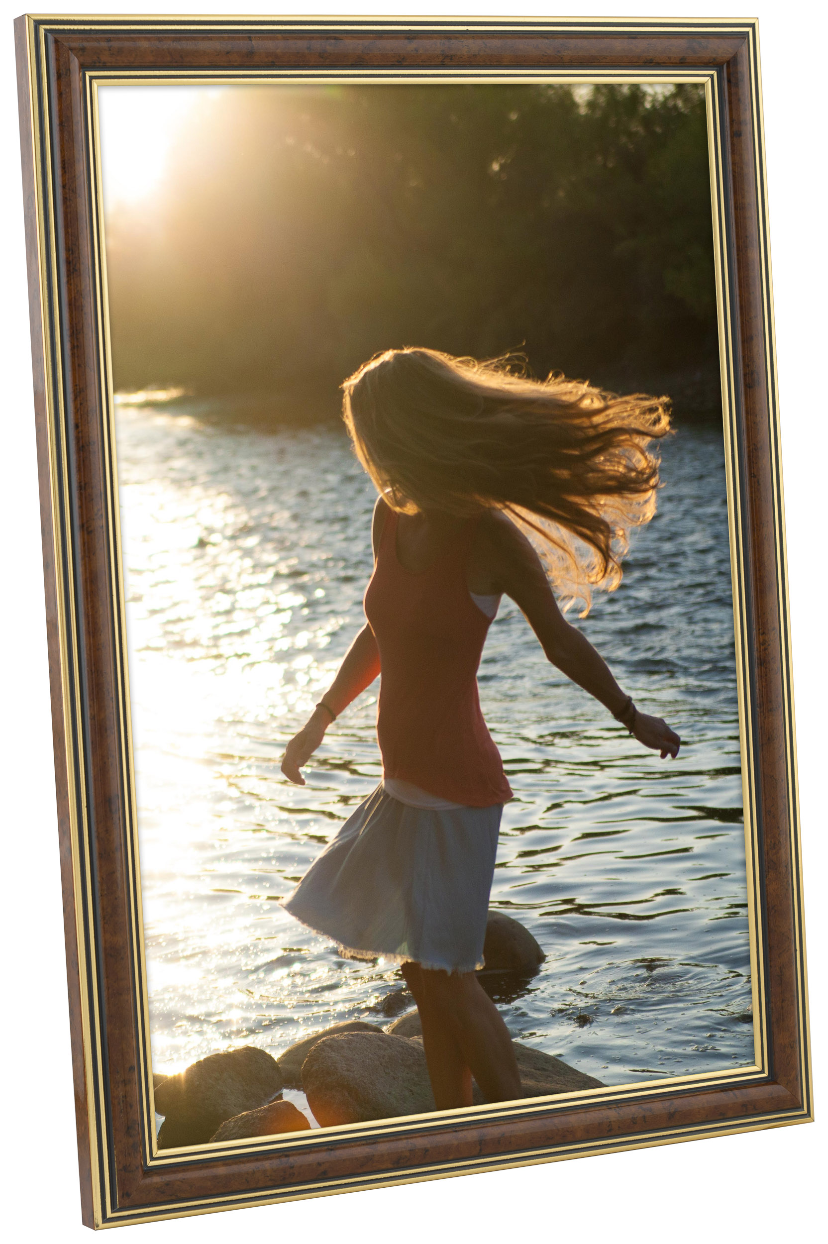 Tango Ljusrot est l'un de nos cadres les plus populaires et s'adapte à de nombreux types d'images. Le cadre a une surface brillante de couleur rouille avec des détails en noir et or.