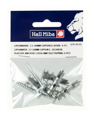Vis et cheville autoperceuse pour mur en plâtre - lot de 4 (13x26 mm)