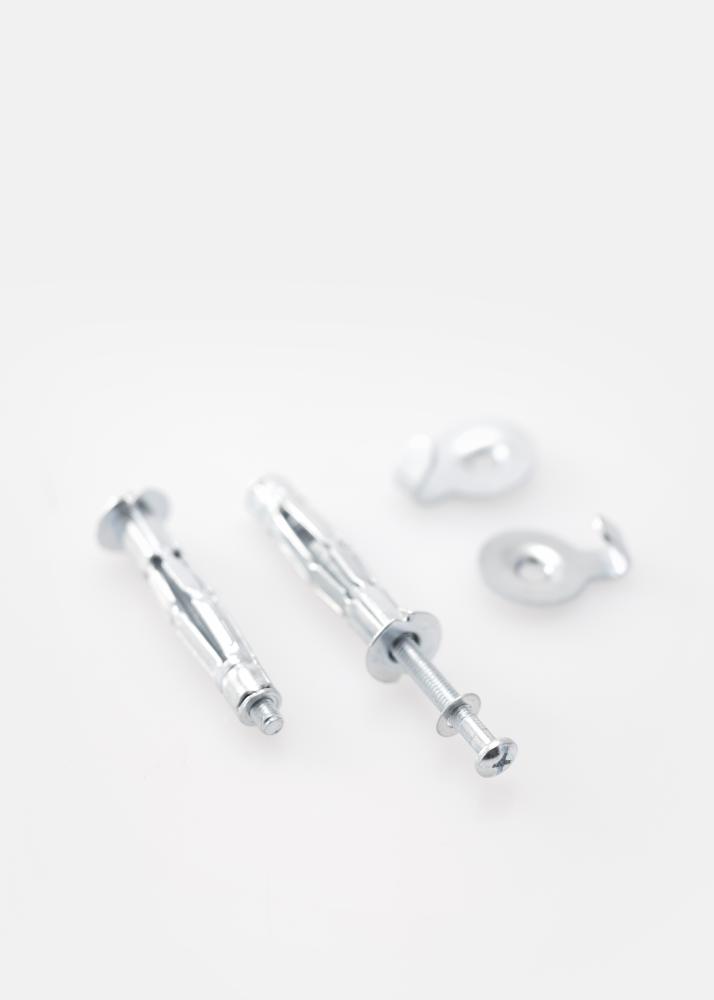 2 chevilles et vis M5 pour mur en plâtre de 13 mm. La rainure de la cheville convient pour une vis de 8 mm.