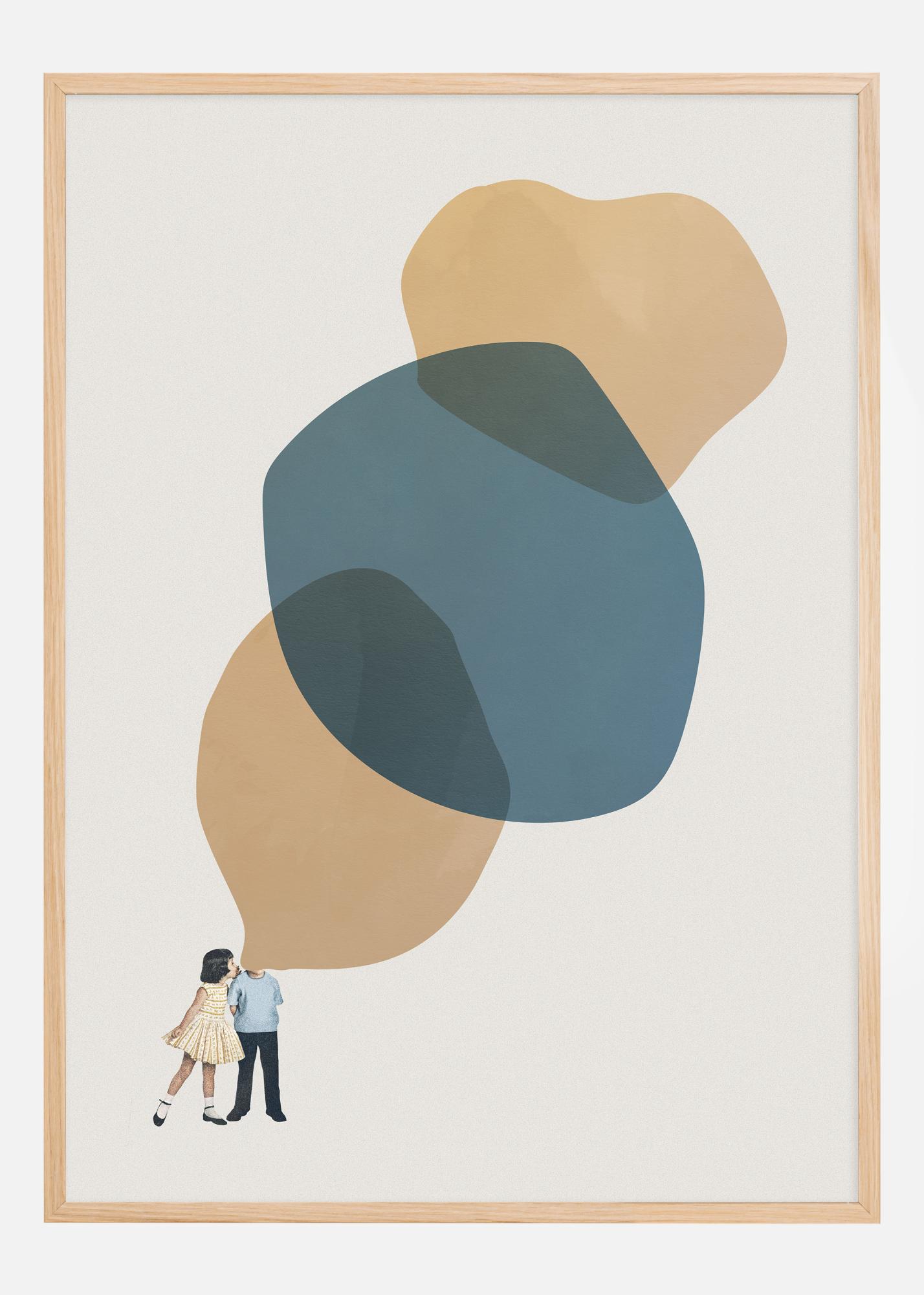 Cette affiche subtile capture un moment intime entre deux enfants se tenant proches, partageant un murmure. Le motif présente ces figures d'enfants entourées de formes abstraites douces et chevauchantes qui créent une sensation d'étreinte chaleureuse autour du duo. L'interaction confidentielle des enfants est dépeinte avec une délicatesse qui évoque des souvenirs des jeux secrets et des accords silencieux de l'enfance. Cette impression invite à un monde de calme et de secrets et devient un récit captivant pour le mur de toutes sortes de pièces.