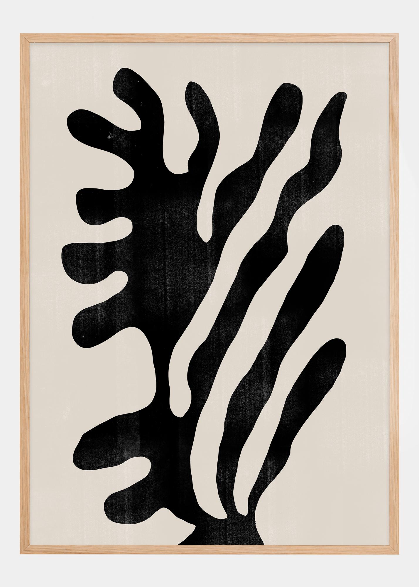 Avec une expression puissante et abstraite, cette affiche invite à une interprétation de la vitalité de la nature. Les formes noires audacieuses, qui rappellent une feuille de plante ou une fleur exotique, contrastent avec le fond crème et créent un effet dynamique et dramatique. Cette œuvre d'art capture la beauté organique de la nature à travers un langage minimaliste mais audacieux.