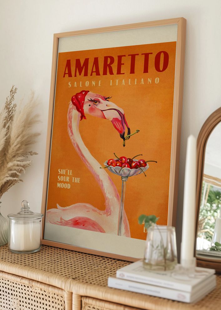 Amaretto Flamingo Art Deco Italian Cafe Travel Art Poster