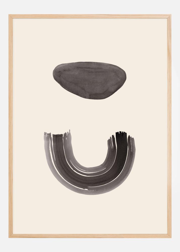 Une élégante affiche abstraite représentant une arche et une pierre. La pierre est suspendue au milieu d'un fond blanc, l'arche renversée juste en dessous donne l'impression qu’un étrange visage vous sourit. Serait-ce un aimant sous la pierre ? Exposez cette œuvre chez vous et laissez-vous aller aux interprétations.