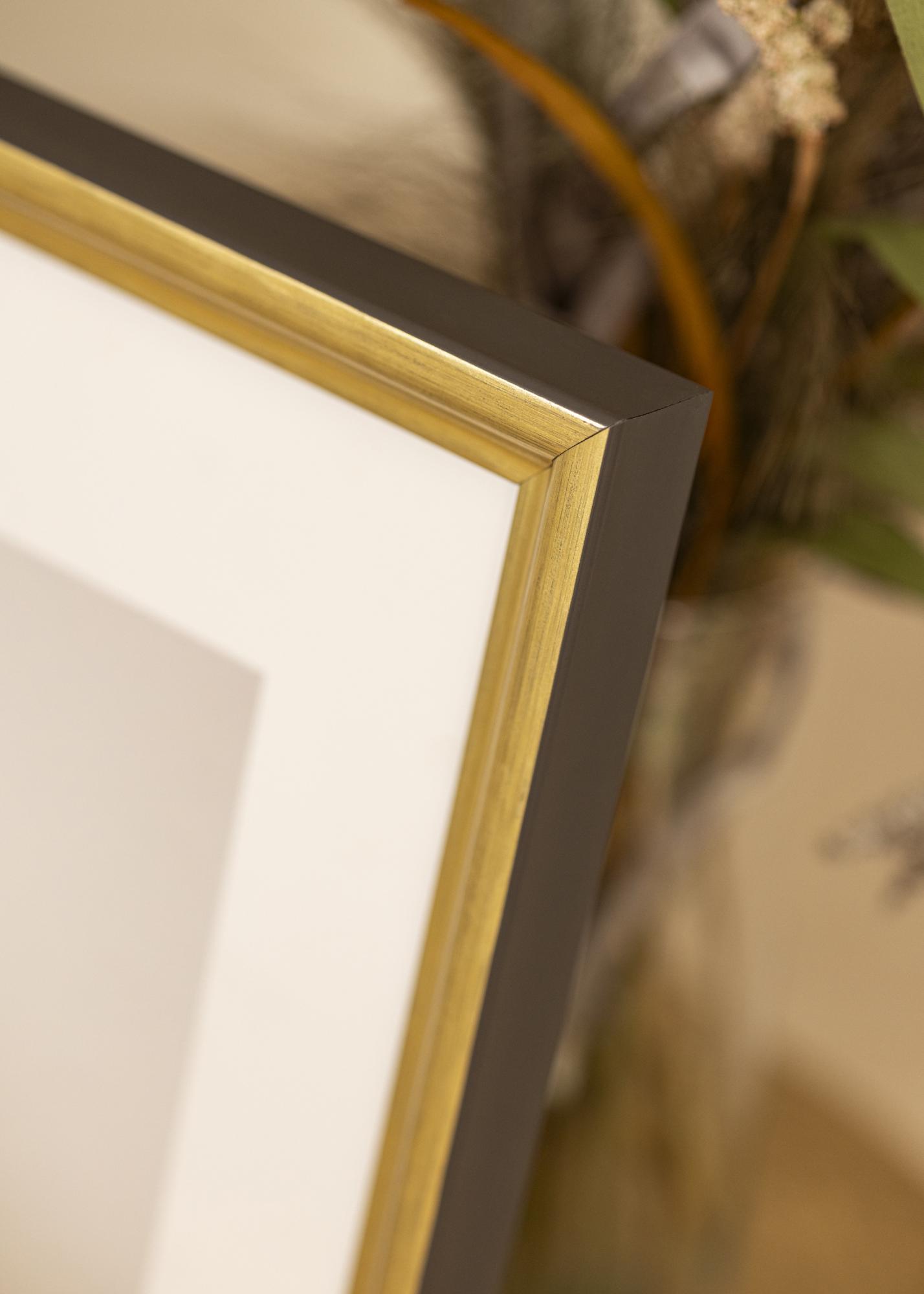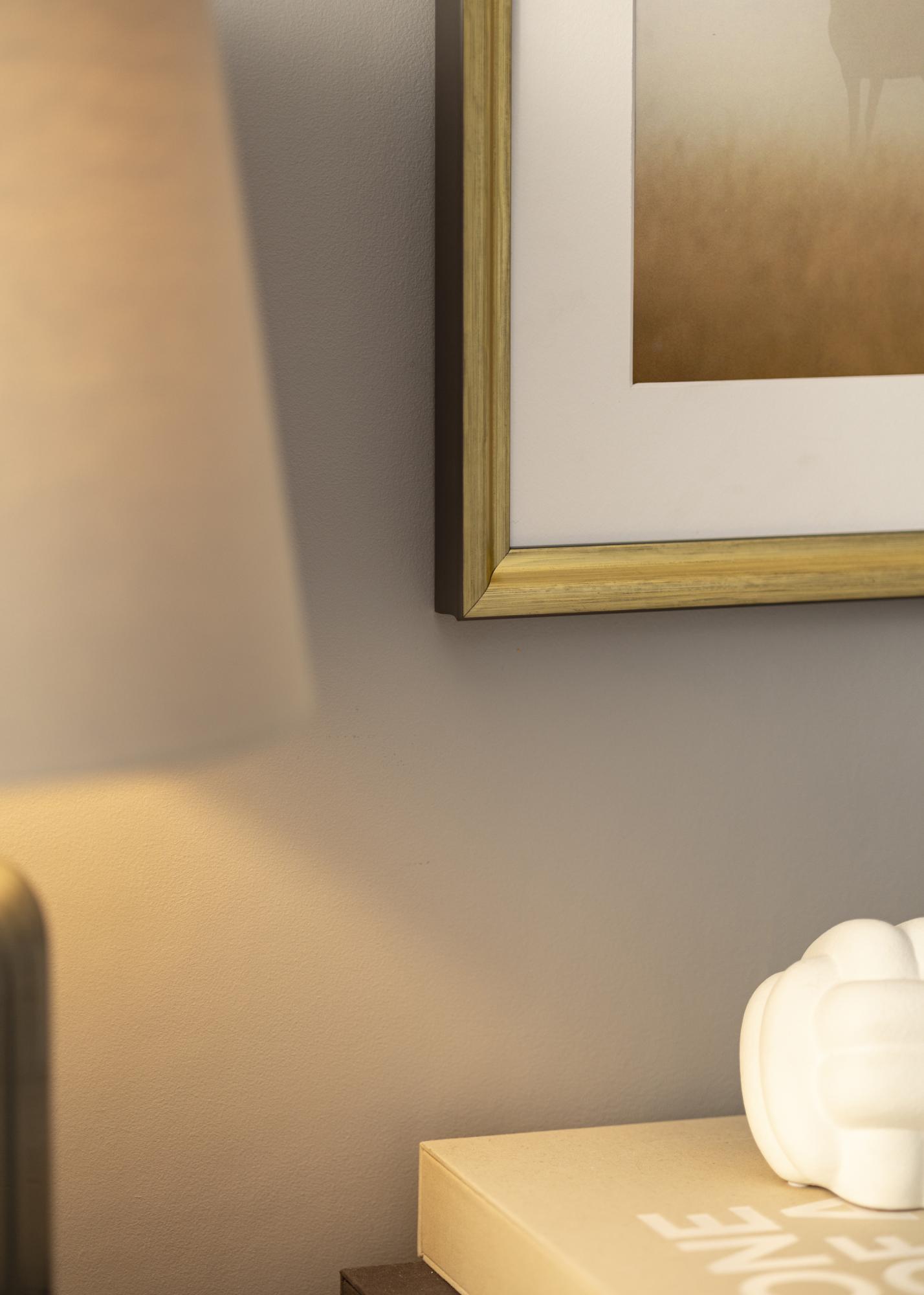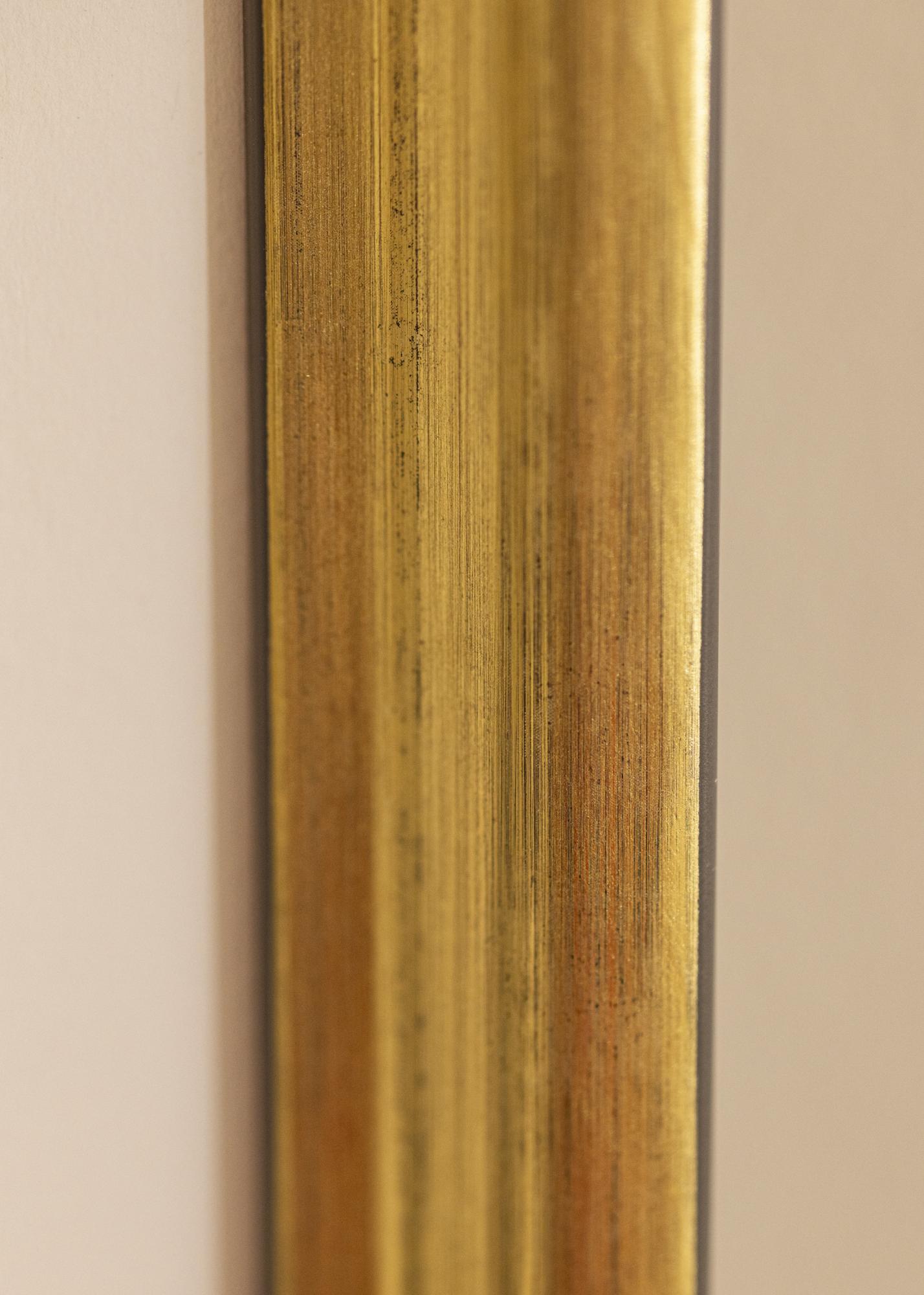 Cadre doré élégant de taille moyenne qui s'adapte à presque tous les types de motifs et de contextes. Le cadre a une agréable couleur dorée avec des tons noirs qui donnent une impression agréable et sobre.