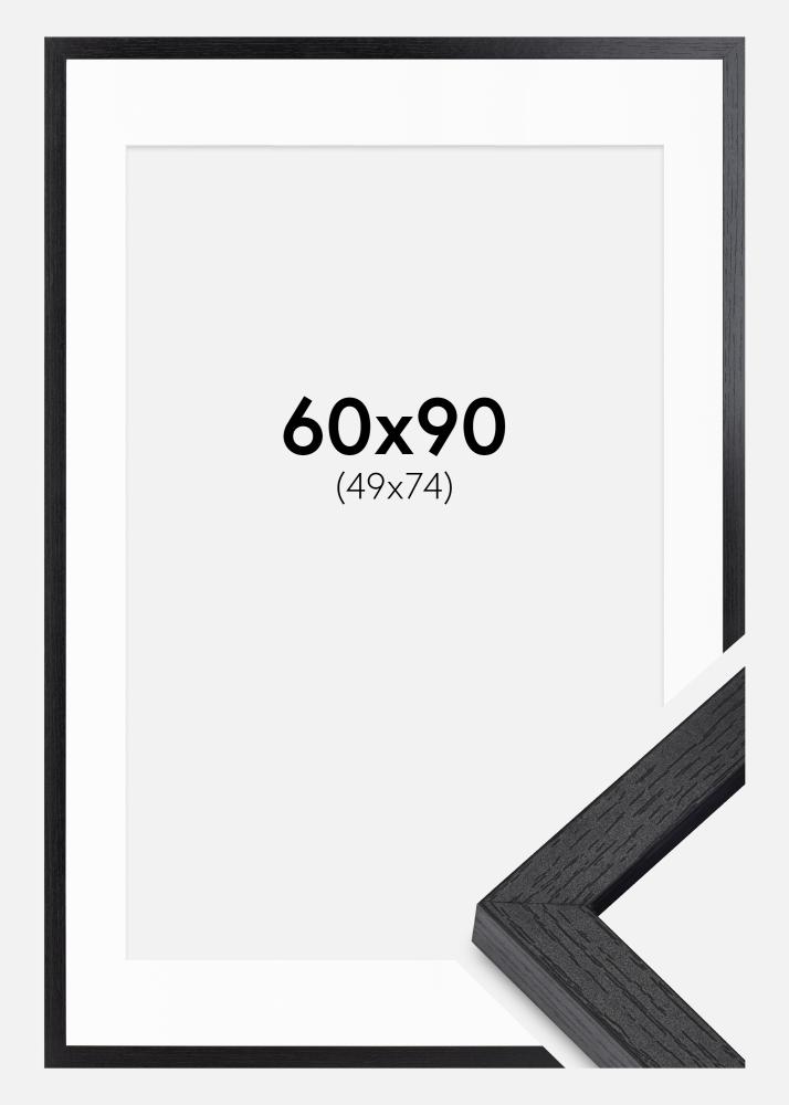 BGA Cadre boîte Noir 60x90 cm - Passe-partout Blanc 50x75 cm