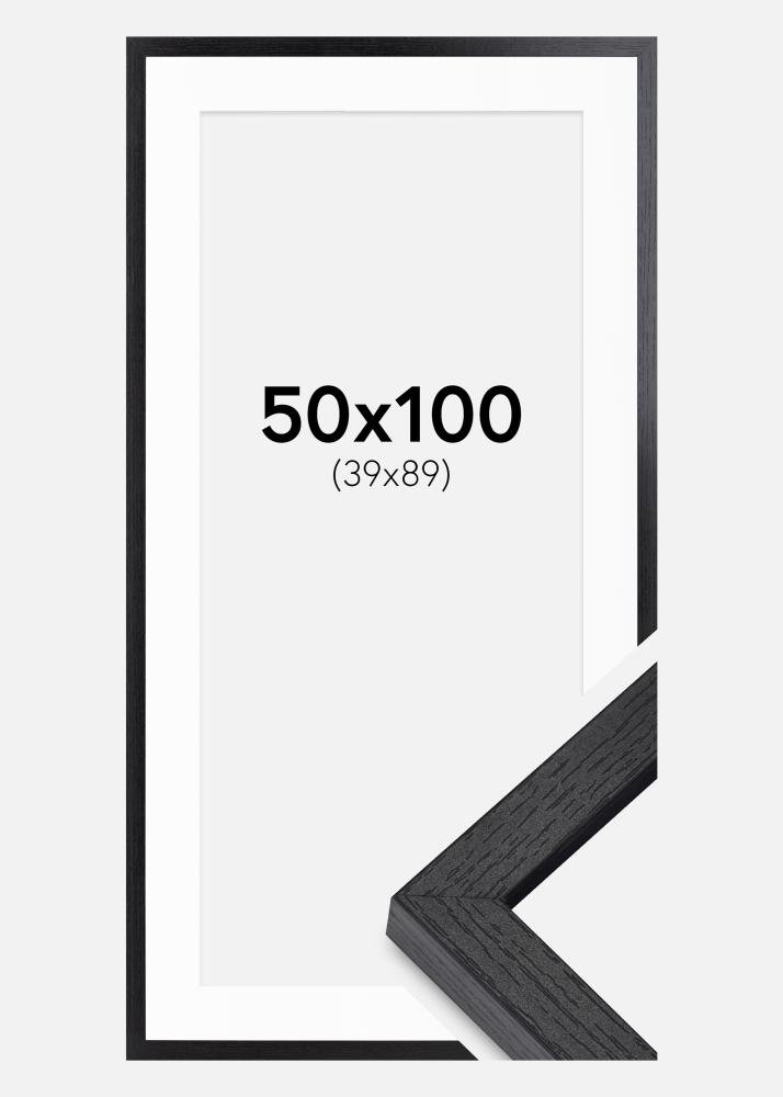 BGA Cadre Boîte Noir 50x100 cm - Passe-partout Blanc 40x90 cm