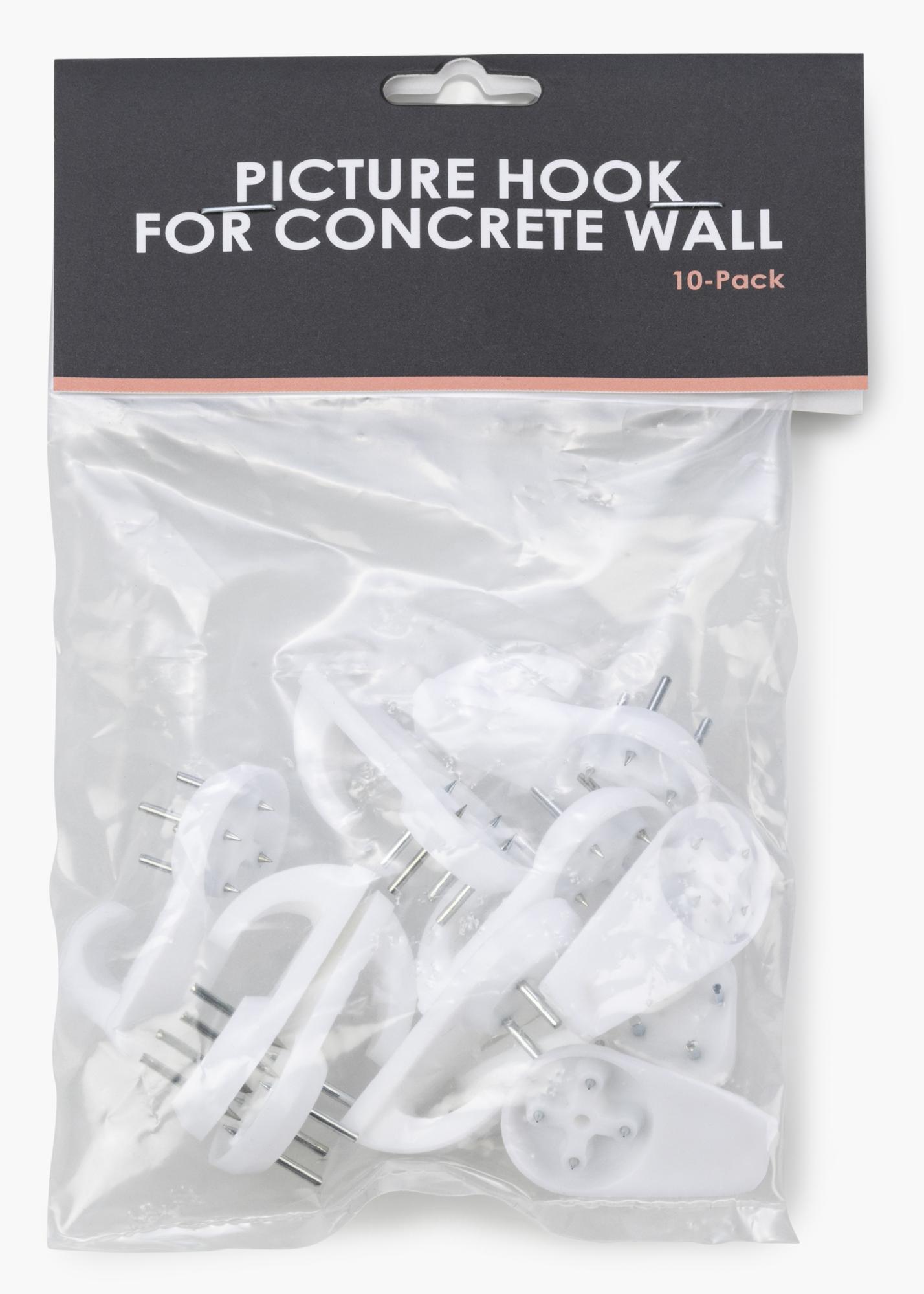 Grands crochets de cadre en lot de 10 pour murs en béton vous évitant de percer et autres tracas liés à l'utilisation de chevilles. Convient pour des tableaux légers de petite taille.