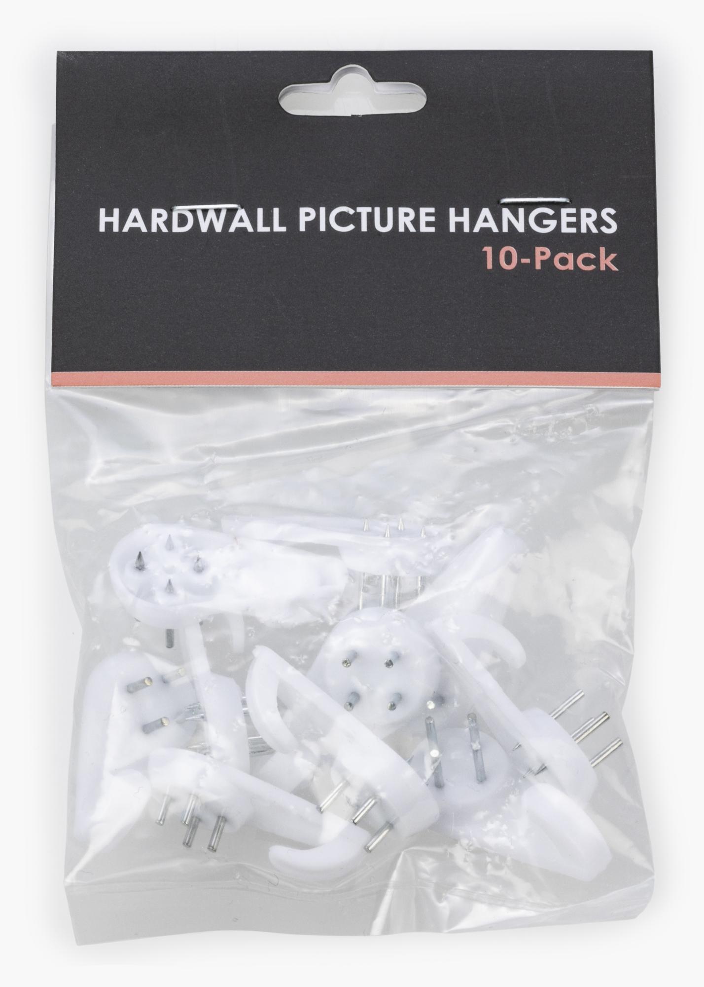 Petits crochets de cadres en lot de 10 pour murs en béton et qui vous évitent de percer et autres difficultés liées à l'usage de chevilles. Convient aux tableaux légers et de petite taille.