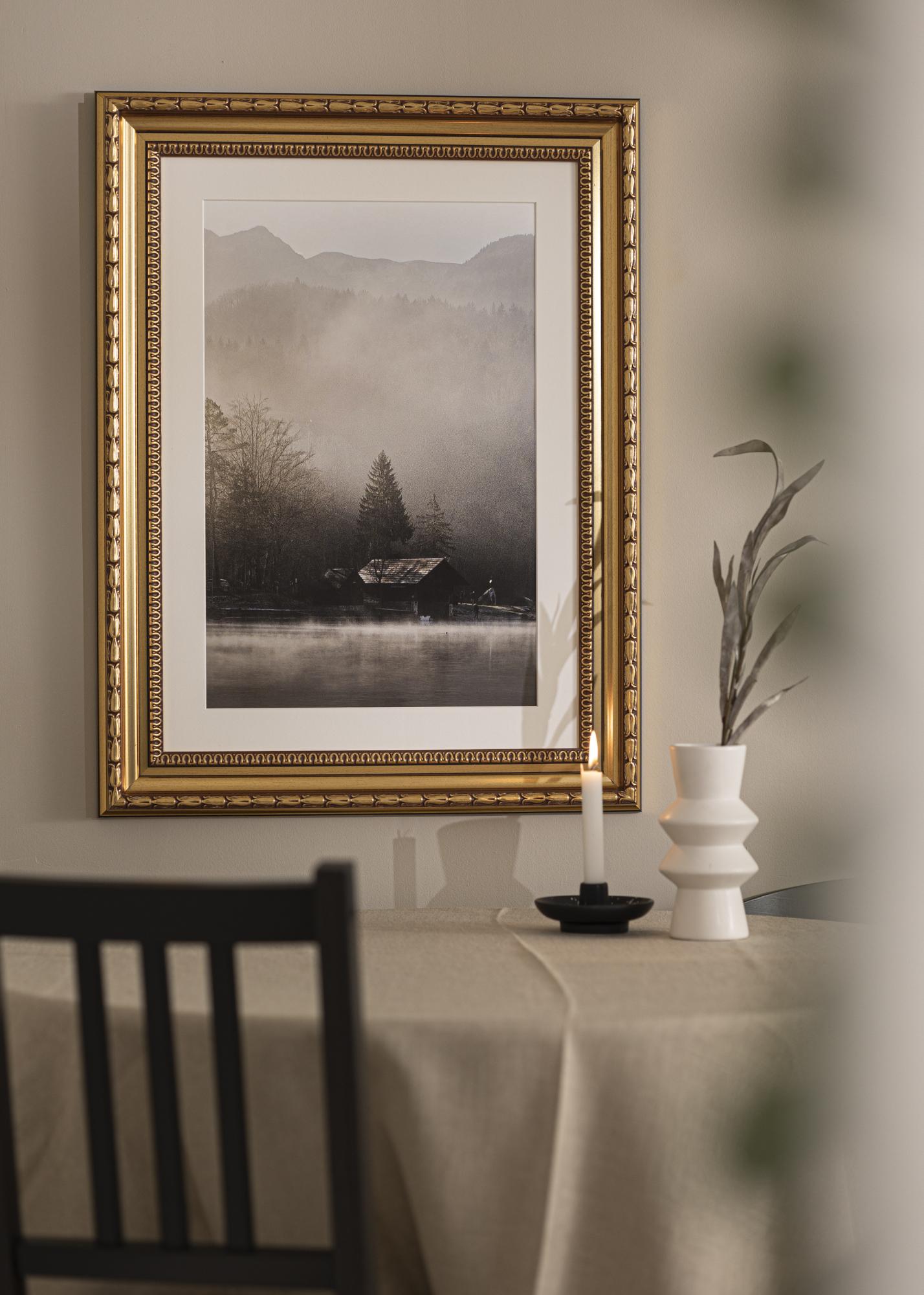 Birka est un cadre doré que vous aimerez regarder pendant très longtemps. Avec son profil large et ses ravissants ornements, c'est un cadre qui convient lorsque vous recherchez quelque chose de vraiment spectaculaire. Le cadre est fabriqué dans notre propre atelier de cadre, ce qui fait que nous osons vous promettre une qualité hors de l'ordinaire !