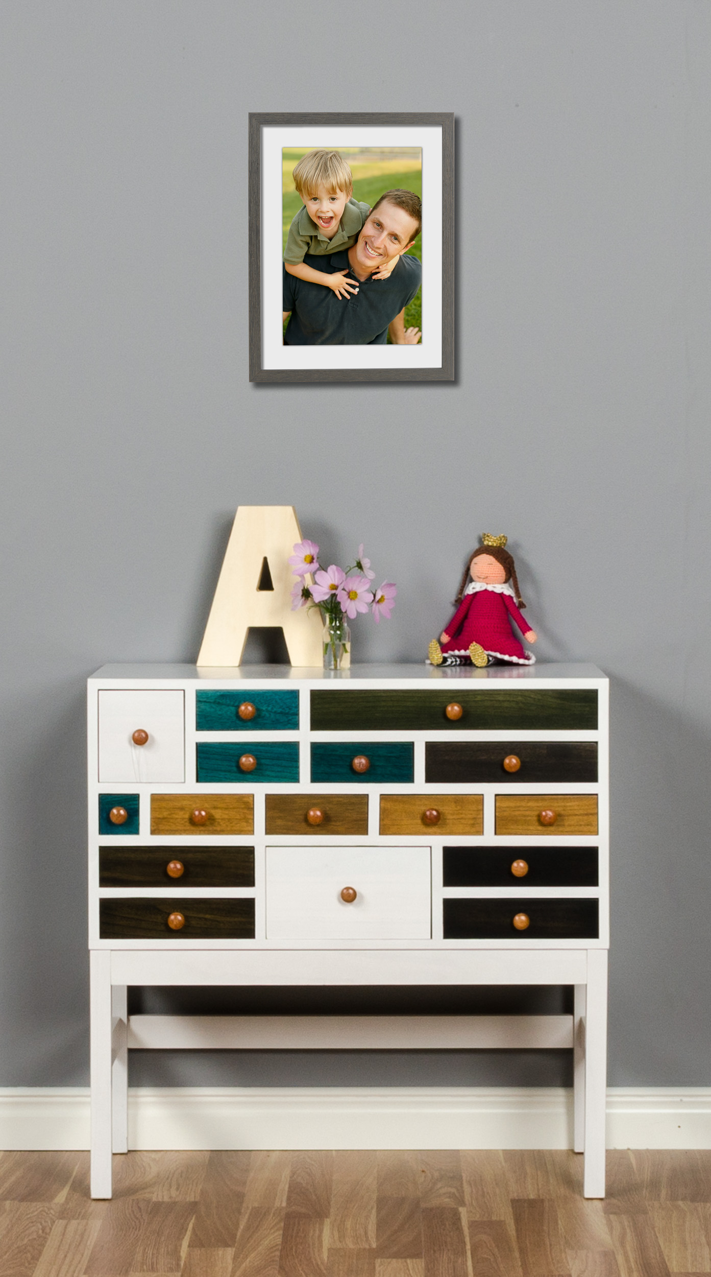 Apportez du caractère à vos images avec ce cadre photo magnifiquement texturé ! La couleur du cadre est semi-opaque, ce qui fait que le motif du bois émerge et rend l'impression encore plus captivante. La bordure est d'un modèle élégant qui se fond bien dans la plupart des intérieurs. Le carton de fond est bien entendu sans acide, et vous pouvez ainsi être sûr que votre photo restera belle pendant de nombreuses années. Le cadre est fabriqué par du personnel compétent ayant une longue expérience dans notre propre atelier de cadre.