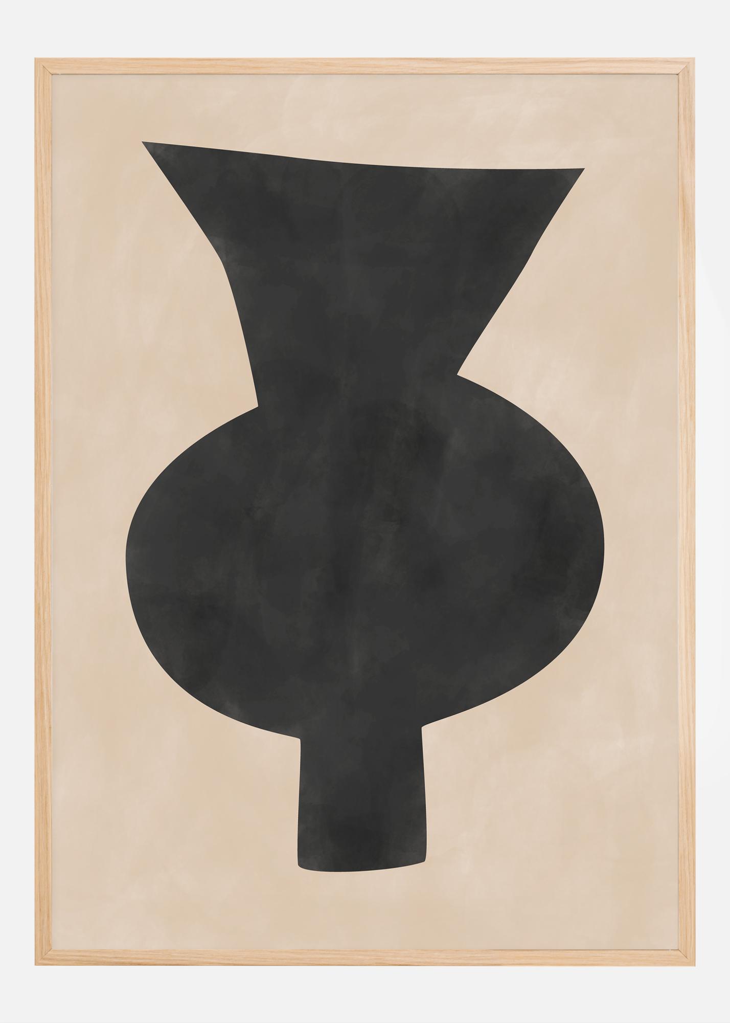 Cette affiche capture l'essence de l'art abstrait contemporain avec sa forme noire audacieuse et simple rappelant un vase ou une sculpture, offrant un effet visuel puissant sur un fond neutre. Le contraste entre le noir profond et le beige apaisant en fait une affiche parfaite pour ceux qui souhaitent faire une déclaration de décoration à la fois élégante et affirmée. La silhouette dynamique et quelque peu organique de la forme crée une sensation de mouvement et de tranquillité, invitant à la réflexion et à l'interprétation.