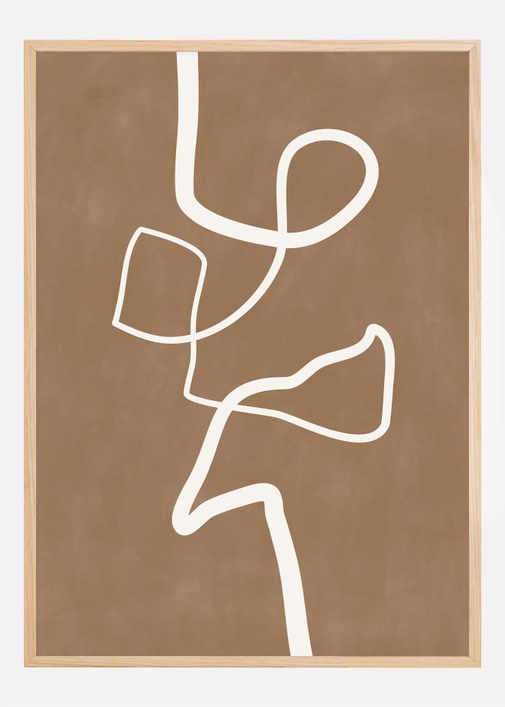 Avec une touche subtile et contemporaine, cette affiche exprime une élégance simple à travers sa ligne blanche unique et continue qui dessine une forme abstraite sur un fond brun chaud. Cette œuvre d'art incarne l'âme du minimalisme et offre un style épuré et simple qui parvient néanmoins à captiver l'œil et l'imagination. La ligne coule libre et sans entrave, créant des formes ouvertes et fermées, et propose une poésie visuelle à la fois apaisante et intellectuellement stimulante. Parfaite pour l'amateur de design minimaliste, cette impression est un ajout de goût à tout intérieur moderne.