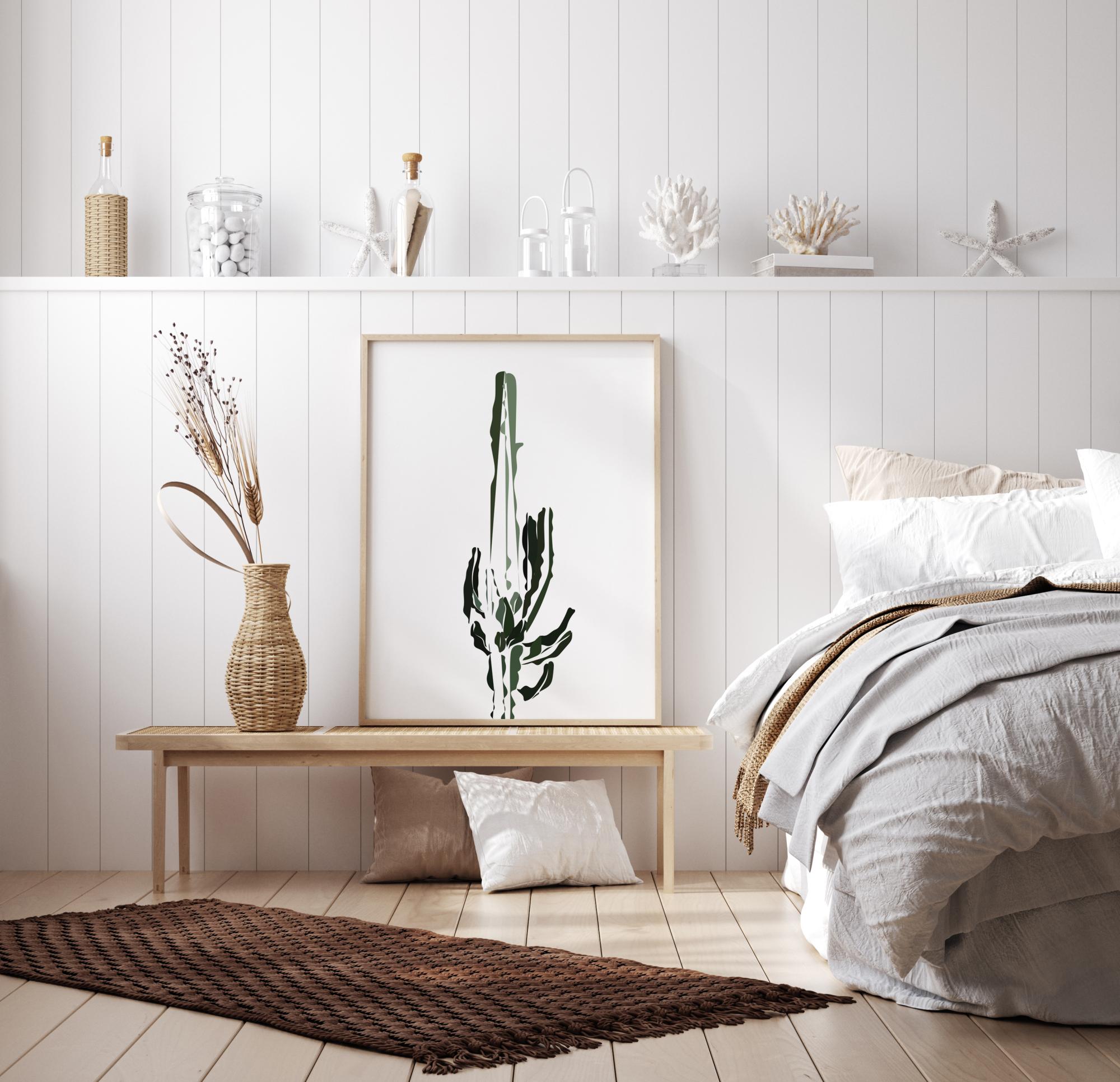 Un poster d'art graphique d'un cactus dans différentes nuances de vert, créé par l'artiste Linn Westanbäck. Merveilleusement minimaliste et parfait pour combiner avec d'autres œuvres d'art de Linn !