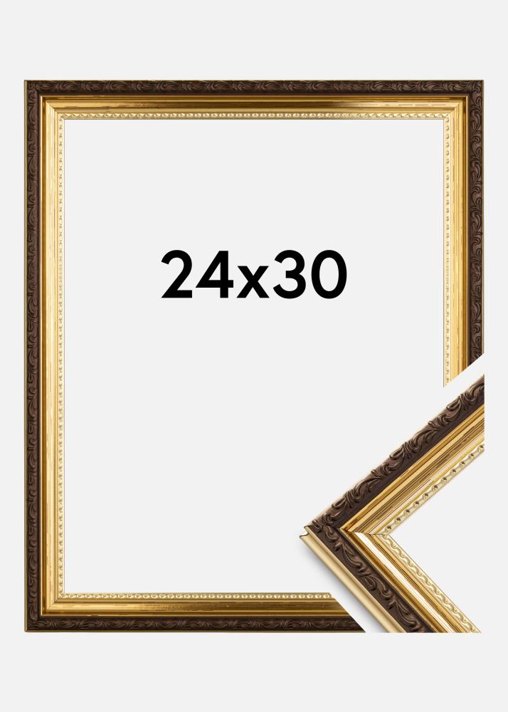 Seriez-vous à la recherche d'un joli cadre décoré dans un style ancien ? Abisko Verre Acrylique Or est un véritable cadre doré avec une ornementation incroyablement esthétique. Les baguettes du cadre d'une largeur de 25 mm sont dans une couleur dorée mate avec une bordure marron ornée au centre. La partie dorée est également décorée, avec un motif ondulé autour du verre.