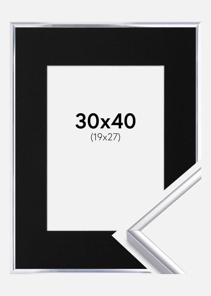 Cadre Aluminium Brillant Argent 30x40 cm - Passe-partout Noir 20x28 cm