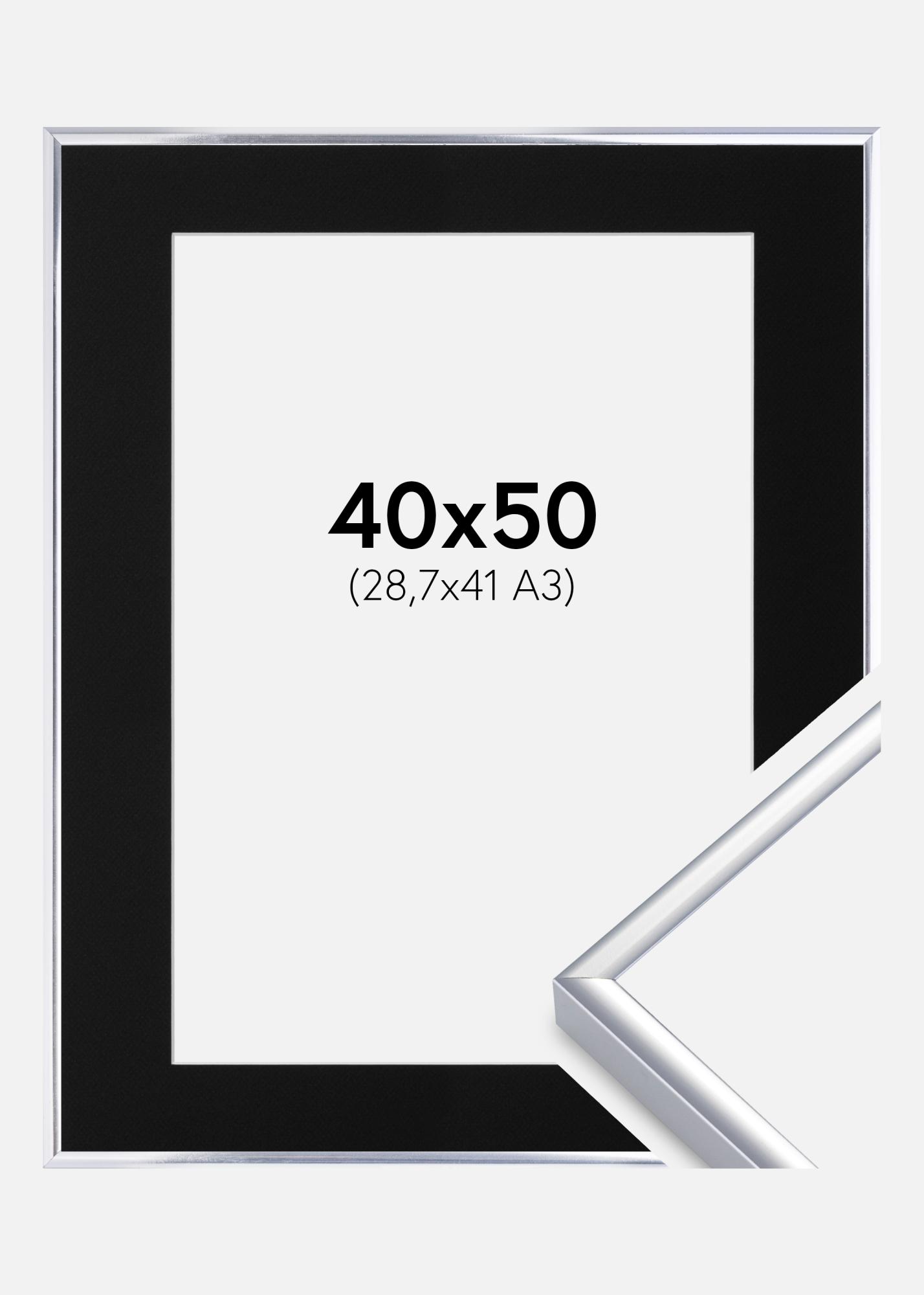 Cadre Aluminium Brillant Argent 40x50 cm - Passe-partout Noir 29,7x42 cm