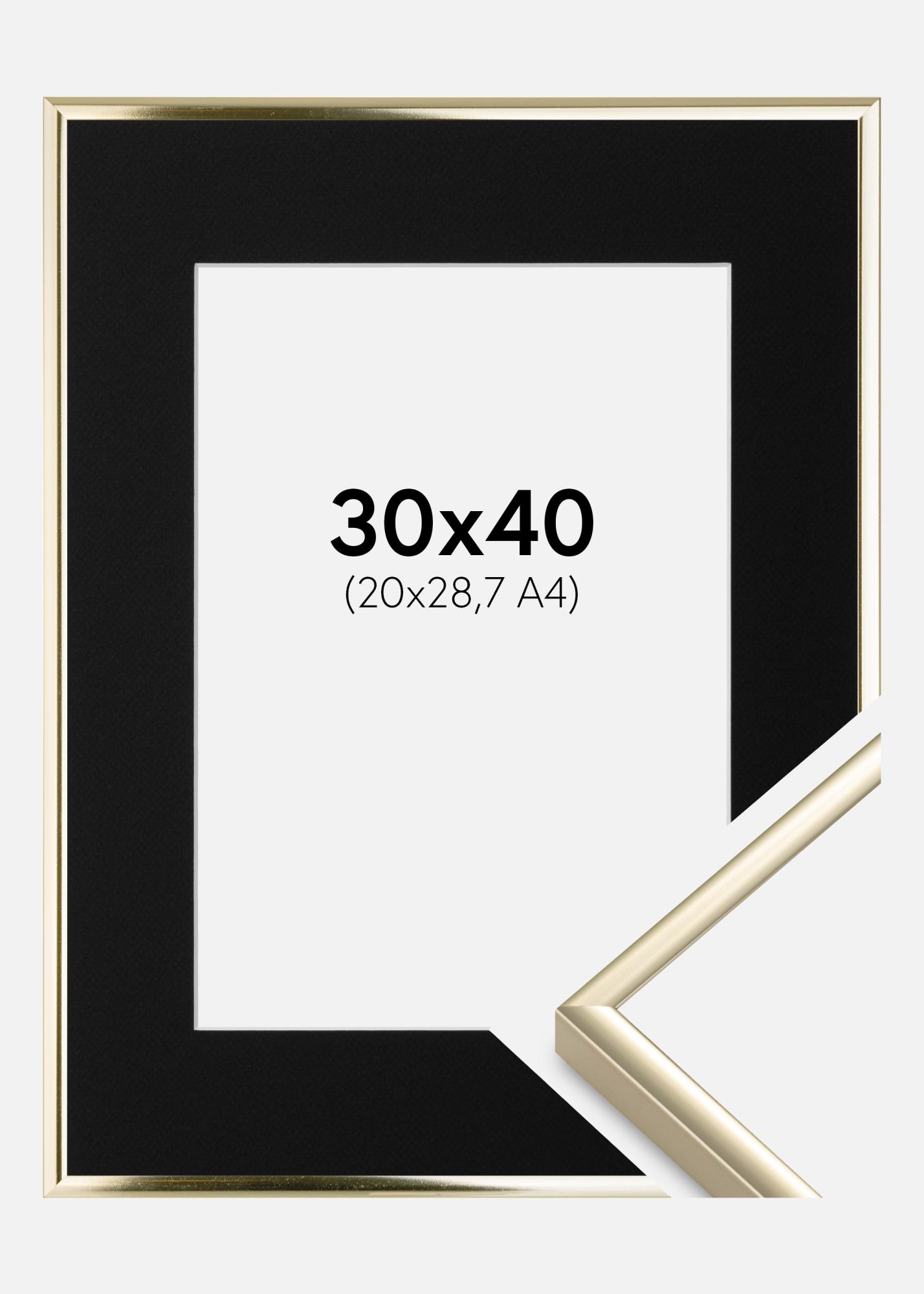 Cadre Aluminium Brillant Or 30x40 cm - Passe-partout Noir 21x29,7 cm