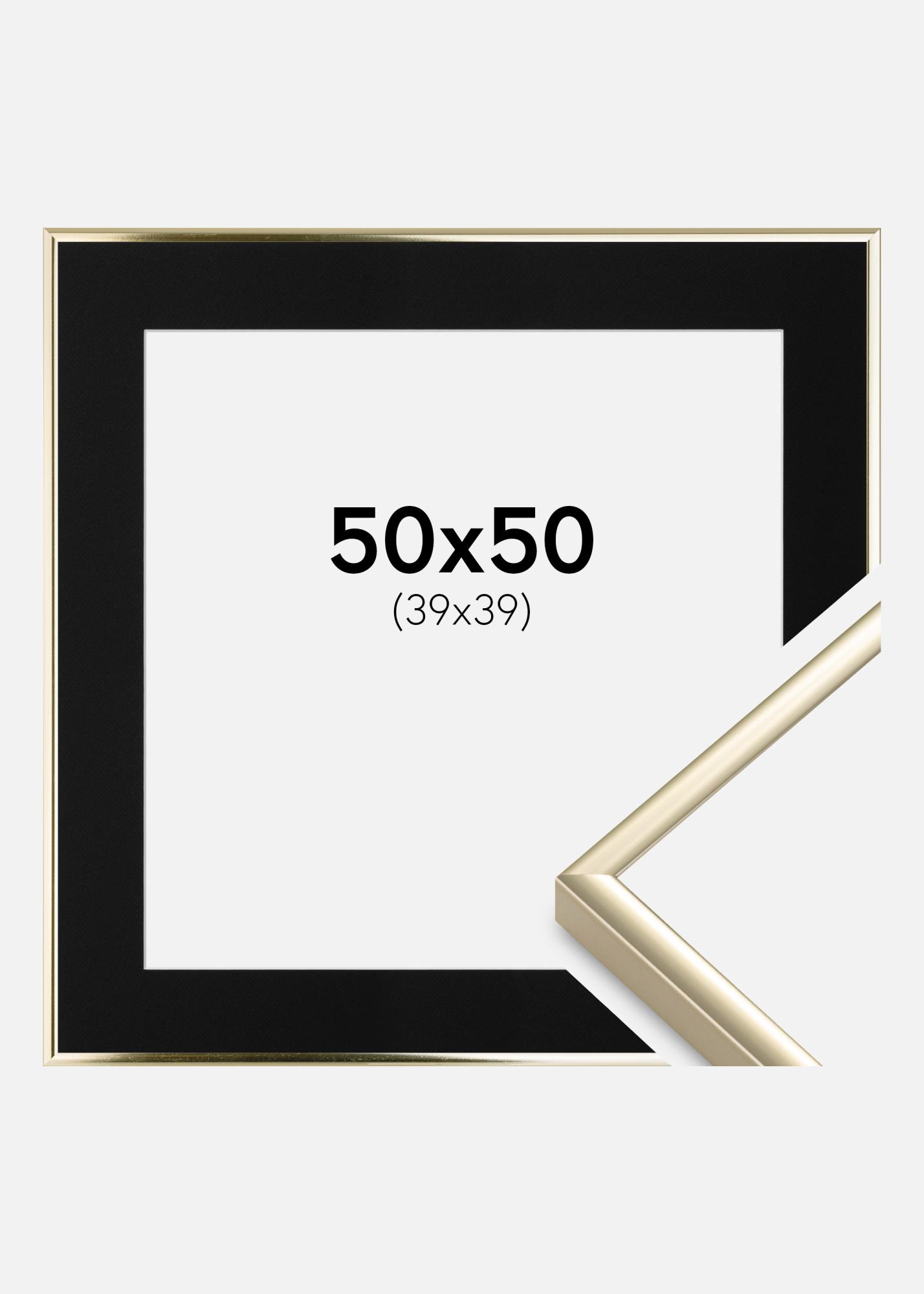 Cadre Aluminium Brillant Or 50x50 cm - Passe-partout Noir 40x40 cm