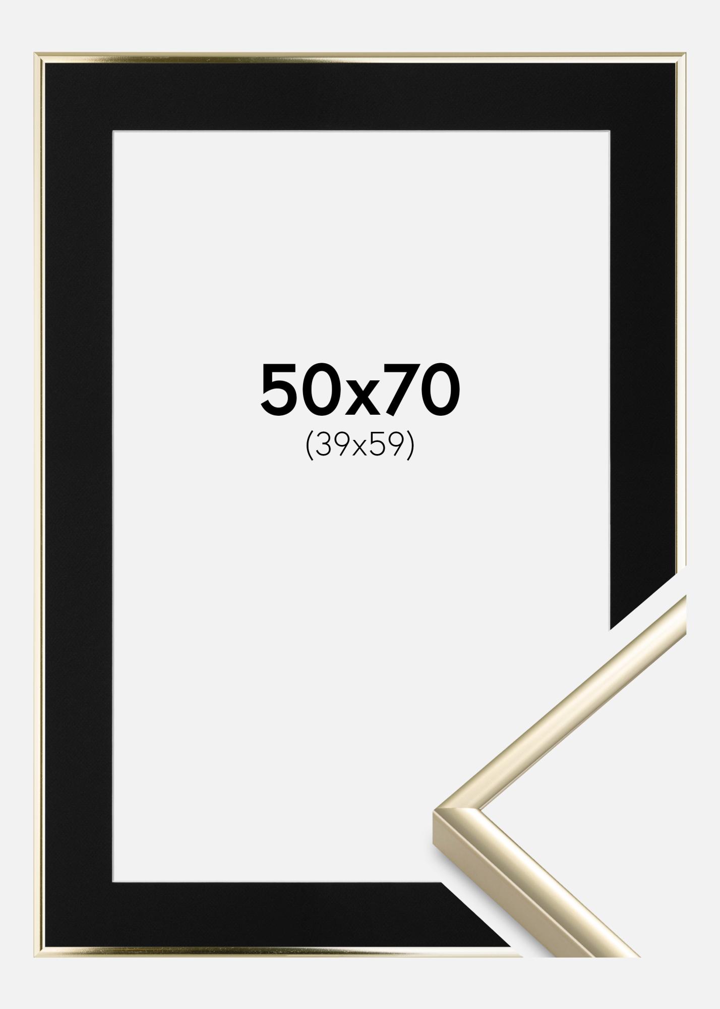 Cadre Aluminium Brillant Or 50x70 cm - Passe-partout Noir 40x60 cm