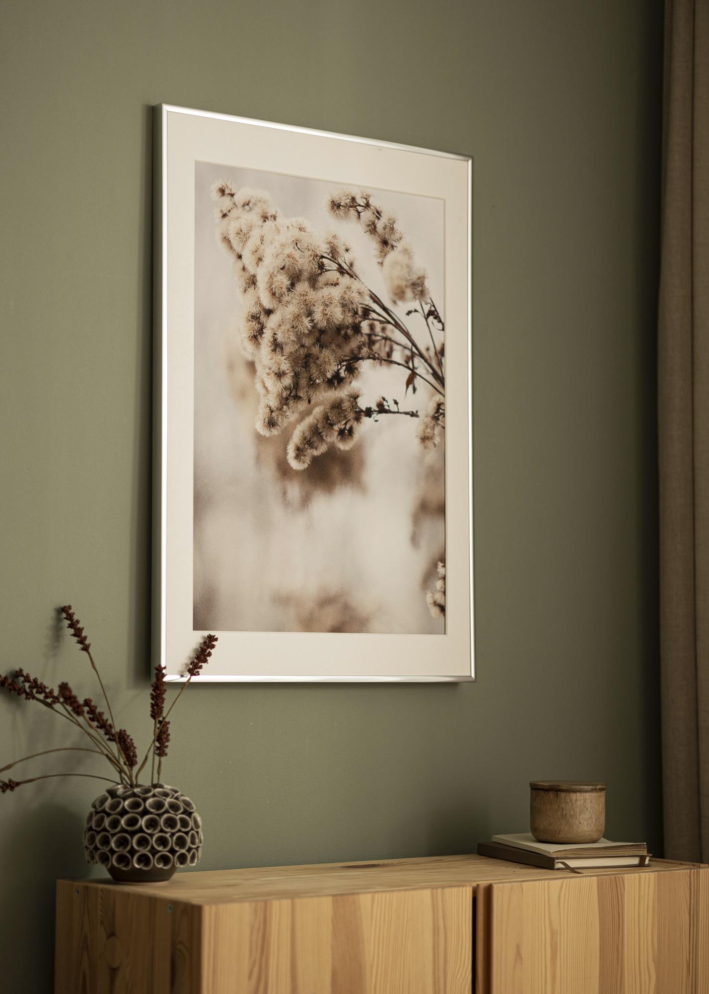 Avec un cadre discret et élégant mesurant 9 mm de largeur, ce cadre photo complète votre motif choisi sans le dominer. De plus, le cadre est équipé de crochets métalliques pratiques à l'arrière, ce qui vous permet de suspendre votre image à la fois horizontalement et verticalement. Pour un montage facile de votre motif, le cadre est également équipé de clips métalliques pivotants.