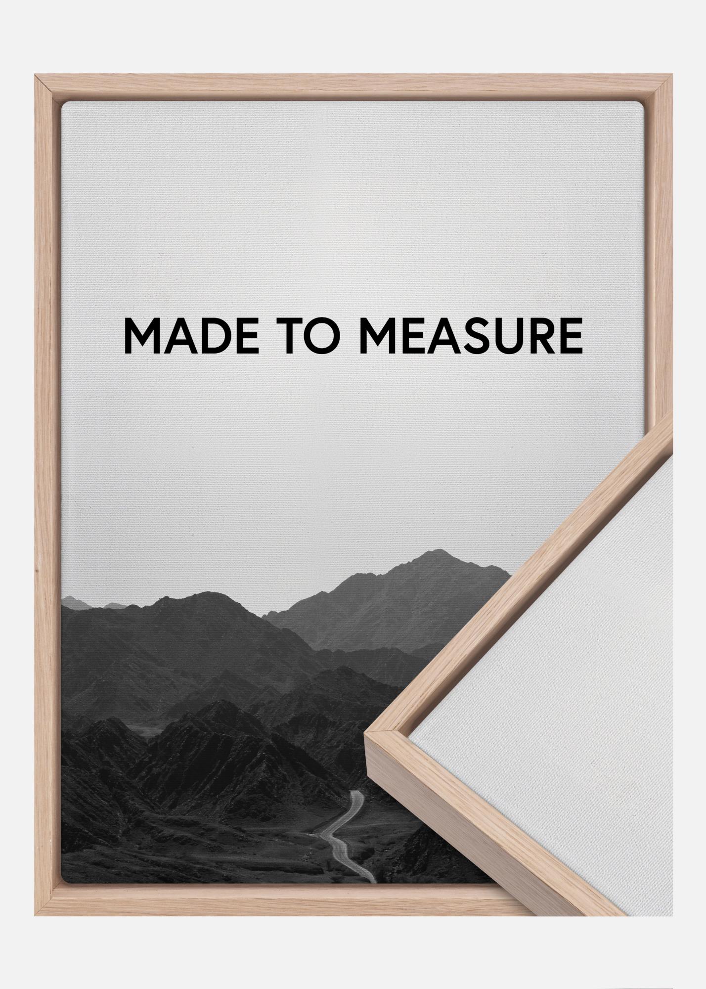 Cadre Anubis Cadre en toile chêne est un cadre en toile sur mesure fabriqué dans notre propre atelier d'encadrement. Ce cadre photo est conçu pour s'adapter aux toiles avec une profondeur de 28 à 38 mm, offrant un effet flottant élégant autour de votre motif. Avec une finition couleur chêne, le grain naturel du bois est mis en valeur, apportant une sensation chaleureuse et intemporelle.