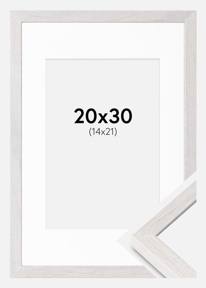 Cadre Ares Chêne Blanc 20x30 cm - Passe-partout Blanc 15x22 cm