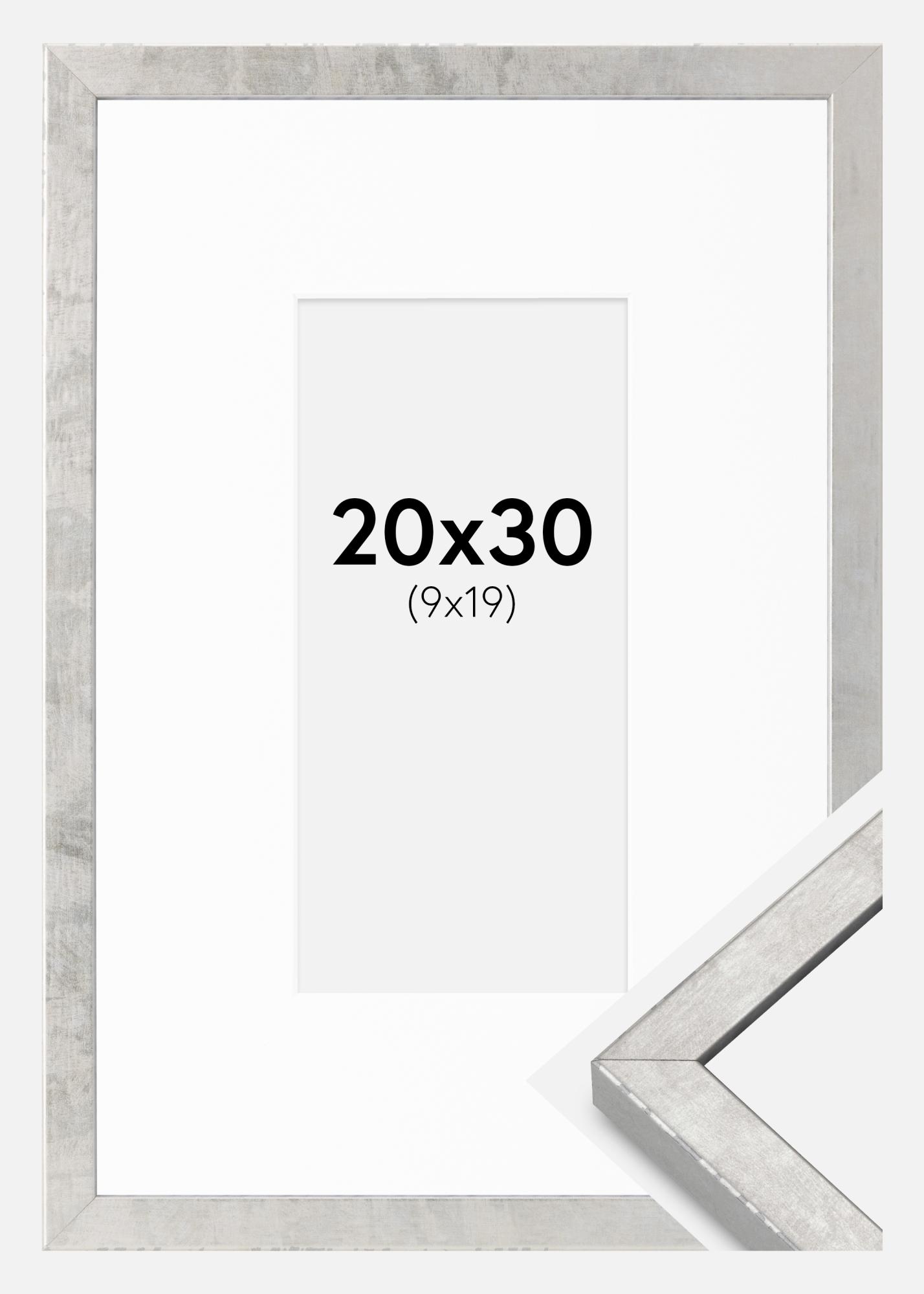 Cadre Ares Argent 20x30 cm - Passe-partout Blanc 10x20 cm