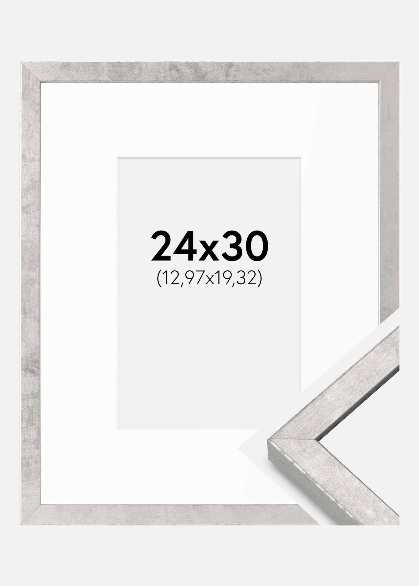Cadre Ares Argent 24x30 cm - Passe-partout Blanc 5,5x8 inches
