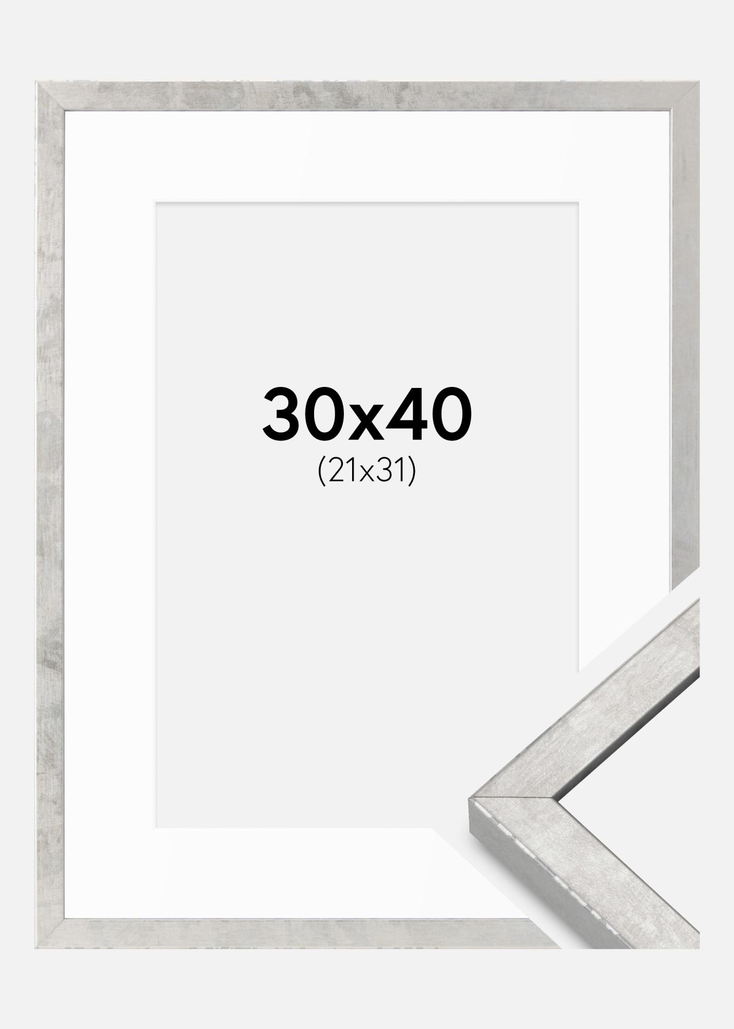 Cadre Ares Argent 30x40 cm - Passe-partout Blanc 22x32 cm