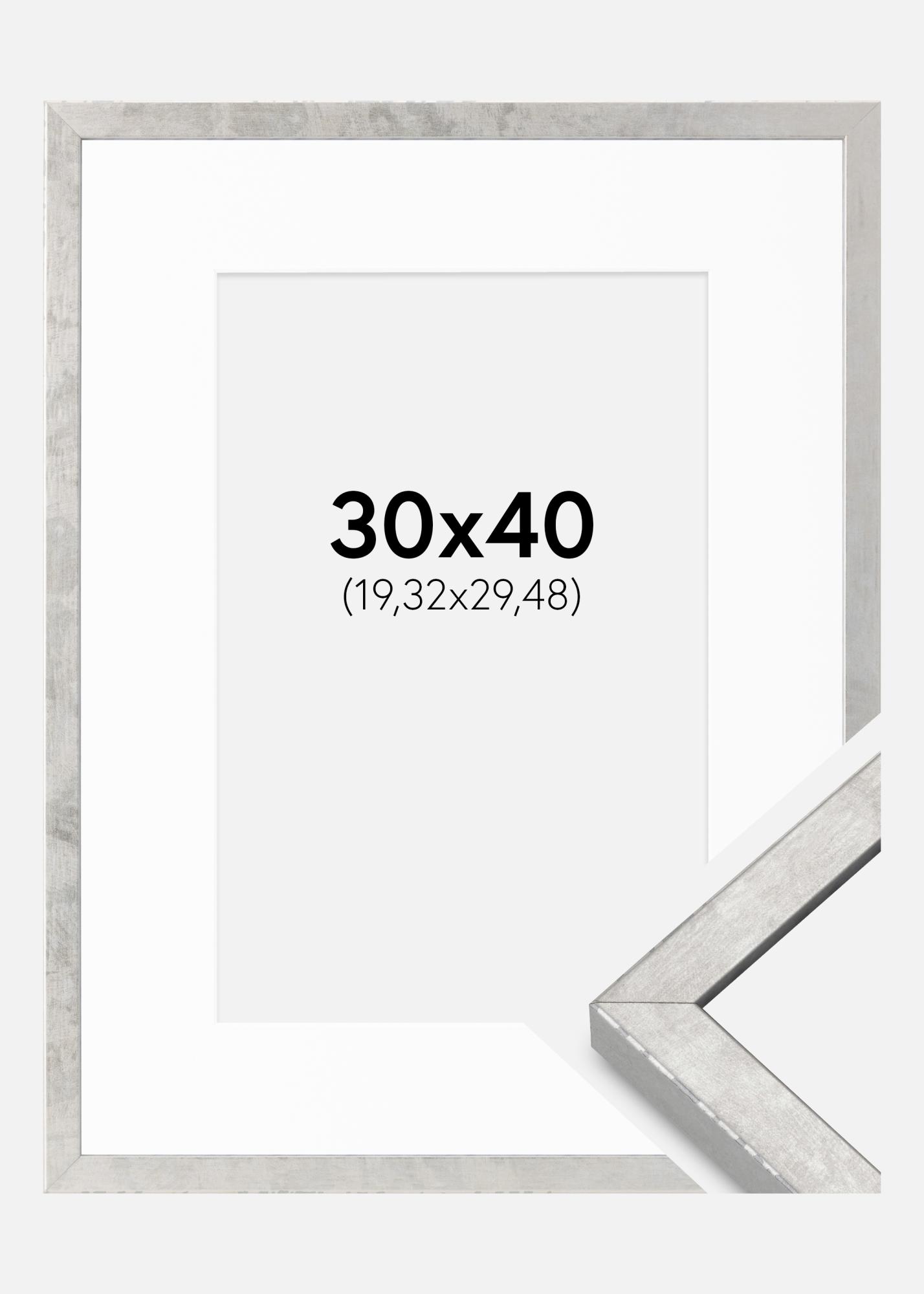 Cadre Ares Argent 30x40 cm - Passe-partout Blanc 8x12 inches