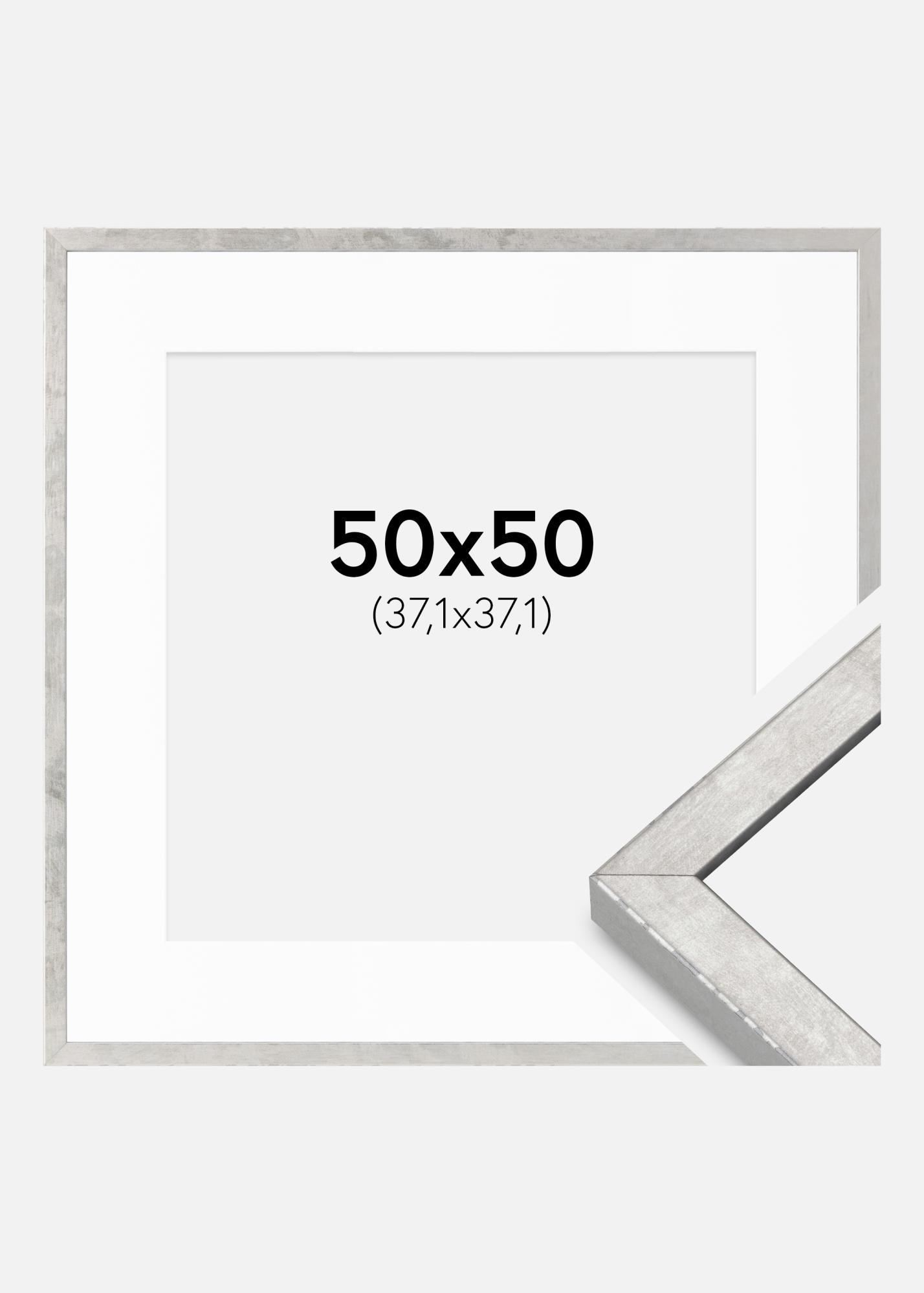 Cadre Ares Argent 50x50 cm - Passe-partout Blanc 15x15 inches