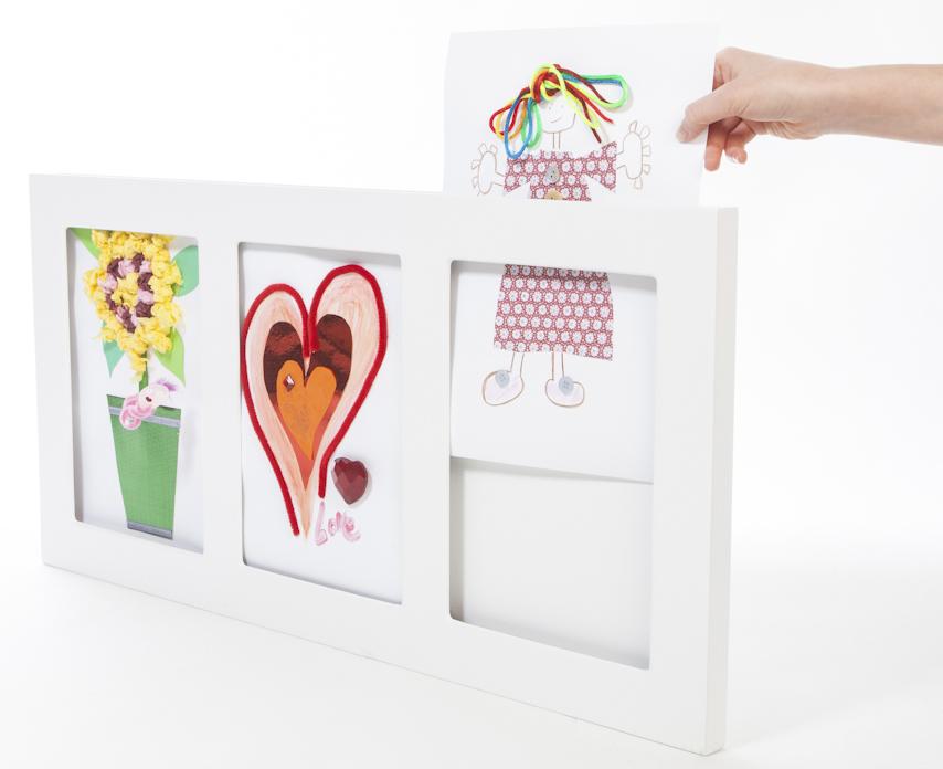 Les cadres pour dessins d'enfants sont un cadeau personnel idéal à offrir à des parents et à des amis, ou bien à l'artiste lui-même pour décorer les murs de sa propre chambre. Quoi qu'il en soit, ce sera un cadeau apprécié qui conviendra dans n'importe quelle maison. Puisque le cadre n'est pas doté de verre, les enfants peuvent créer de magnifiques œuvres d'art en 3D et réaliser un tableau à l'aide de morceaux de papier, de perles ou de fil chenille. Seule l'imagination fixe les limites.