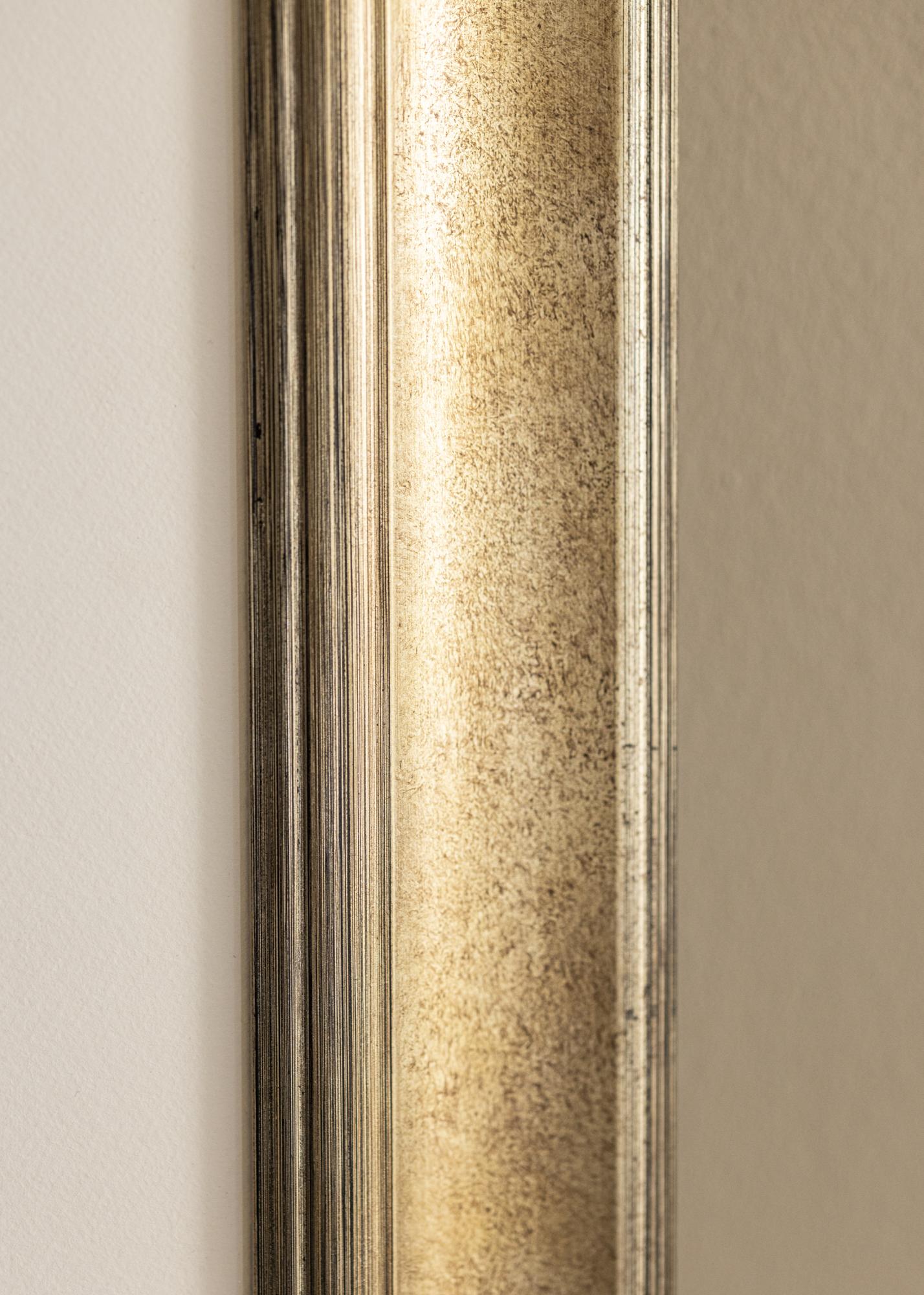 Les décorations fines et linéaires le long des bords contribuent à l'apparence élégante du cadre, tandis que la surface brossée avec des variations subtiles de couleur met en valeur sa profondeur et sa texture. La teinte argent foncé crée une sensation classique et intemporelle qui s'intègre à la plupart des styles d'intérieur.