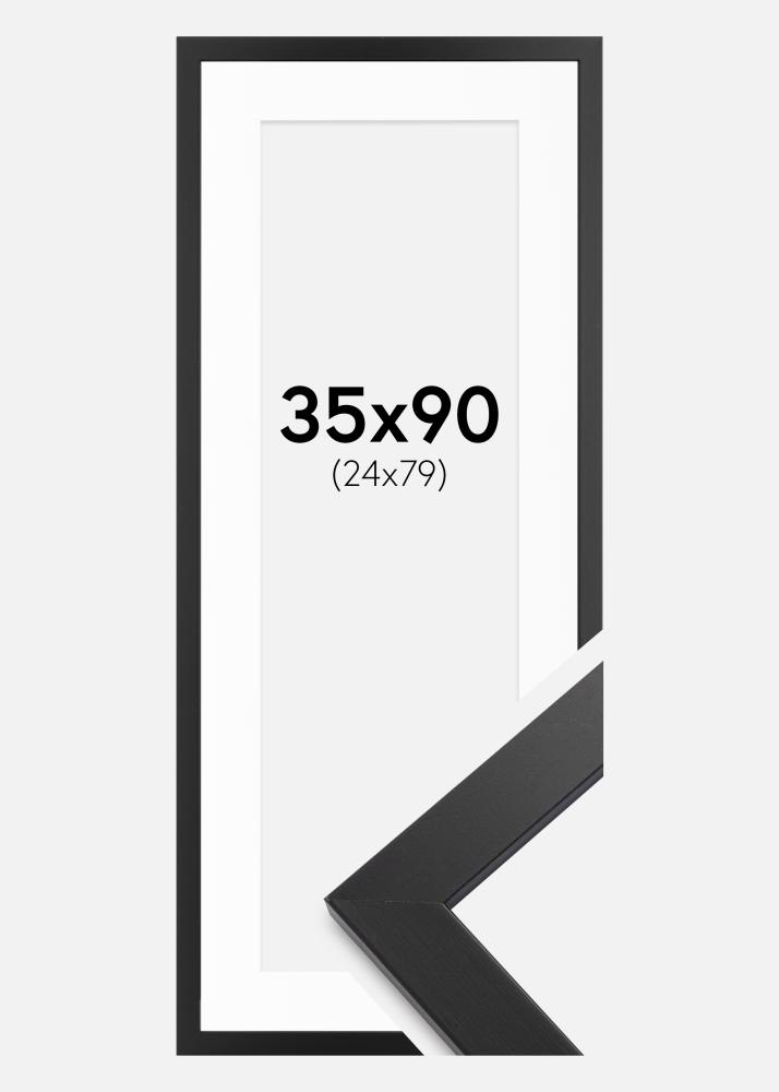 Cadre noir bois 35x90 cm - Passe-partout Blanc 25x80 cm