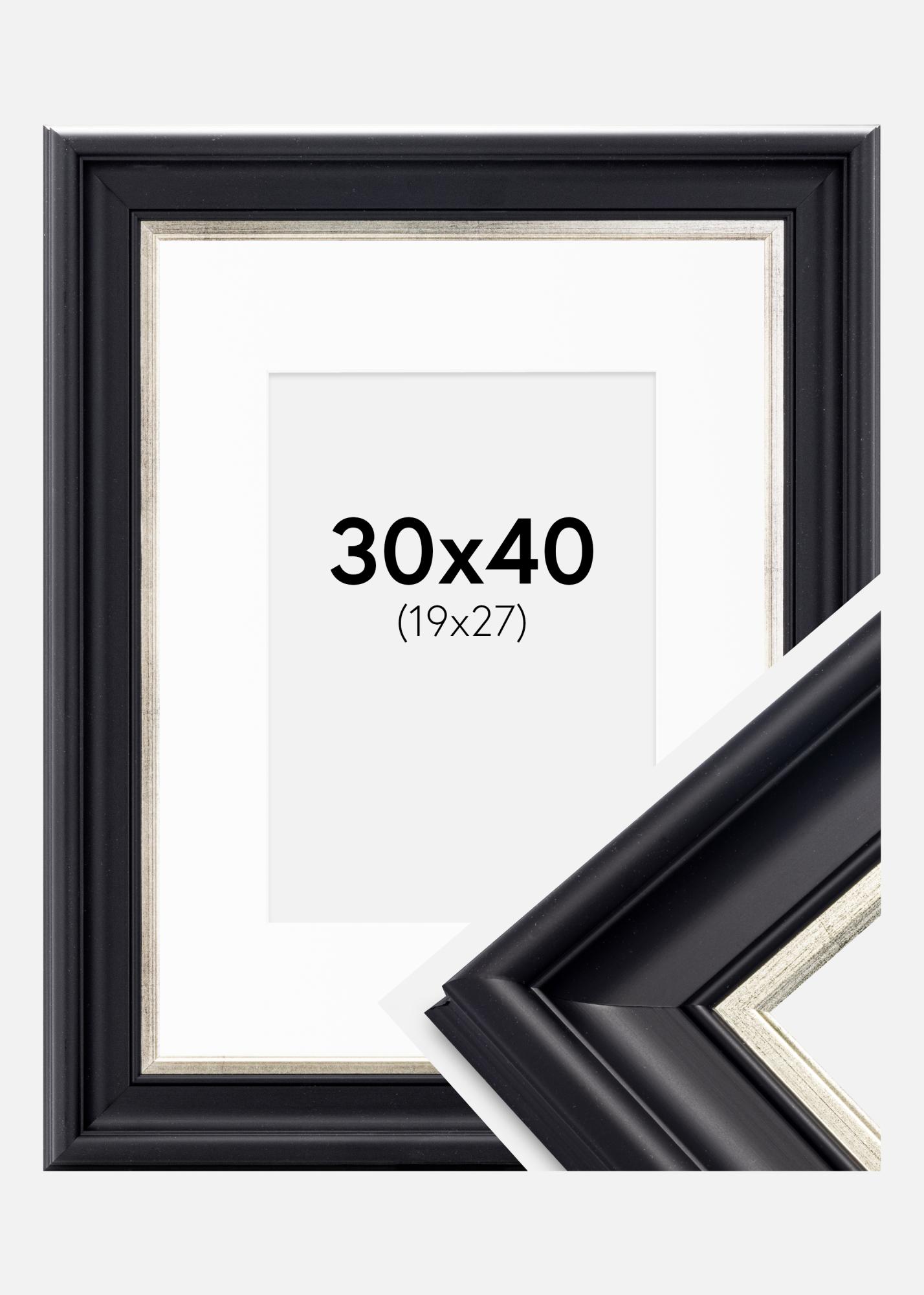Cadre Dalarna Noir-Argent 30x40 cm - Passe-partout Blanc 20x28 cm