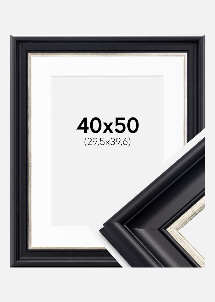 Cadre Dalarna Noir-Argent 40x50 cm - Passe-partout Blanc 12x16 inches