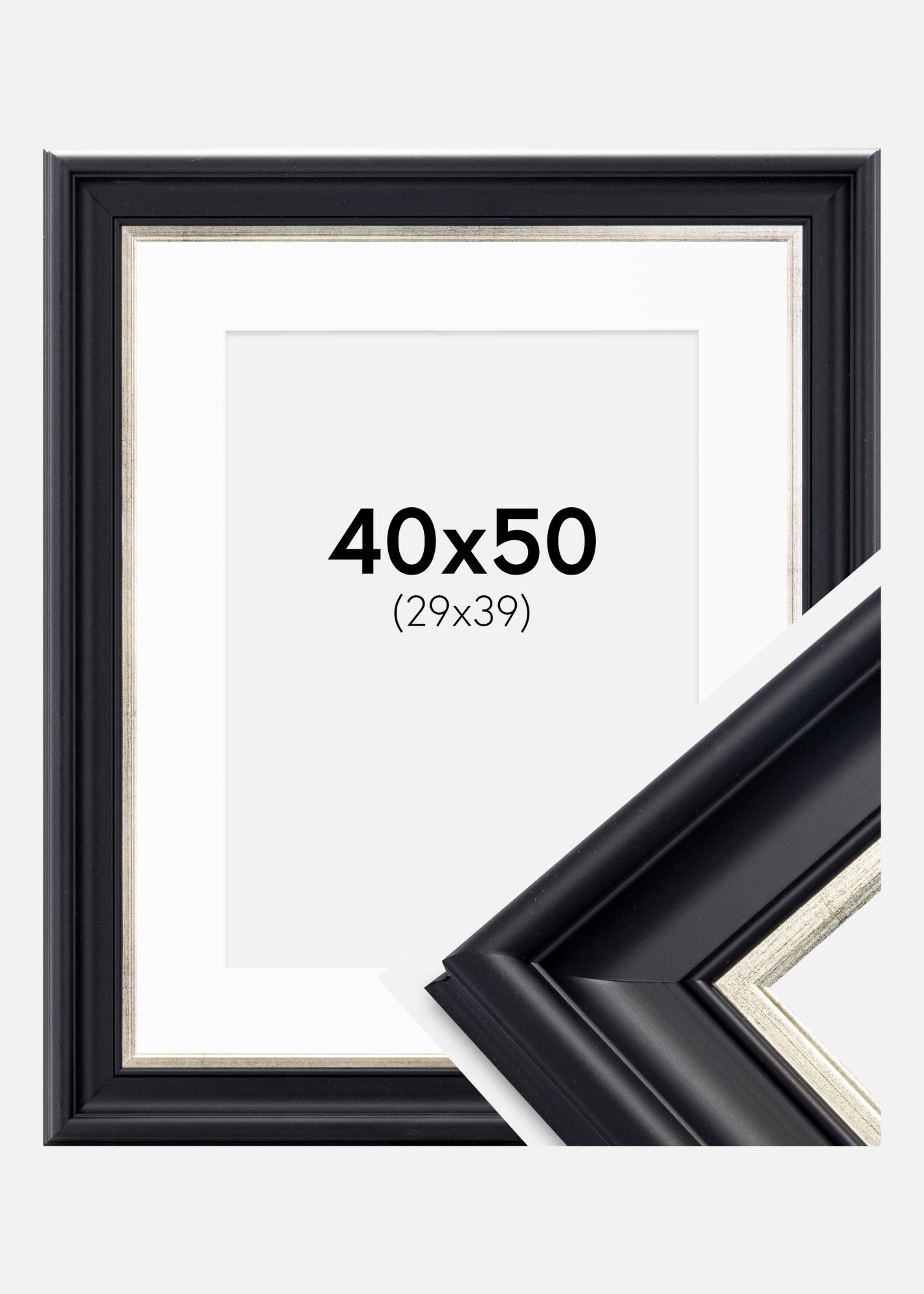 Cadre Dalarna Noir-Argent 40x50 cm - Passe-partout Blanc 30x40 cm