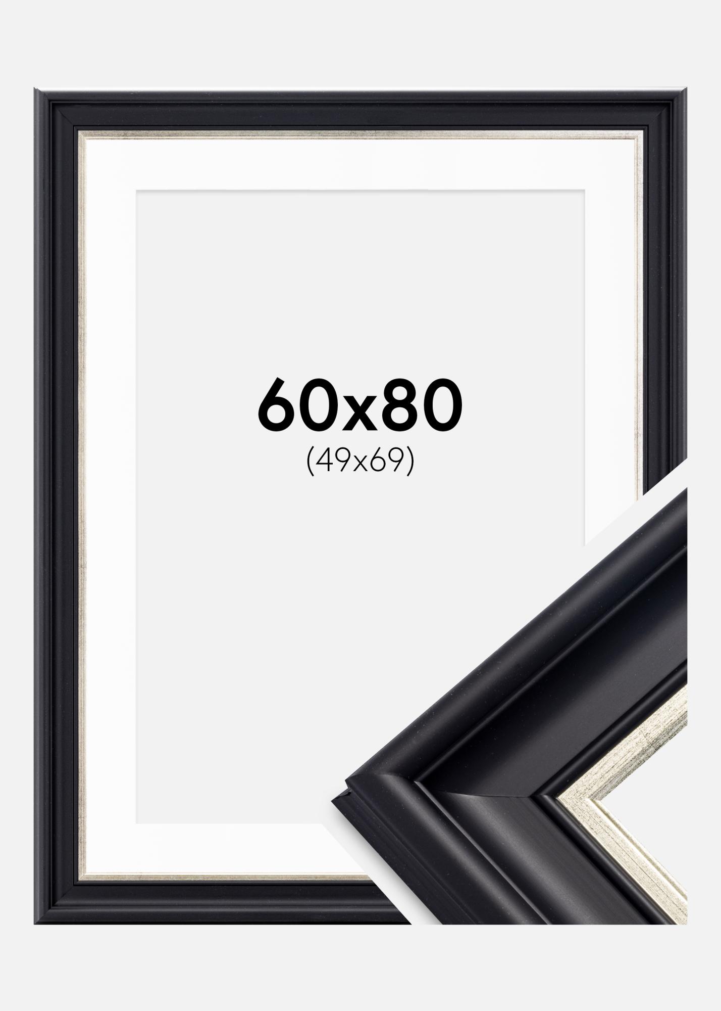 Cadre Dalarna Noir-Argent 60x80 cm - Passe-partout Blanc 50x70 cm