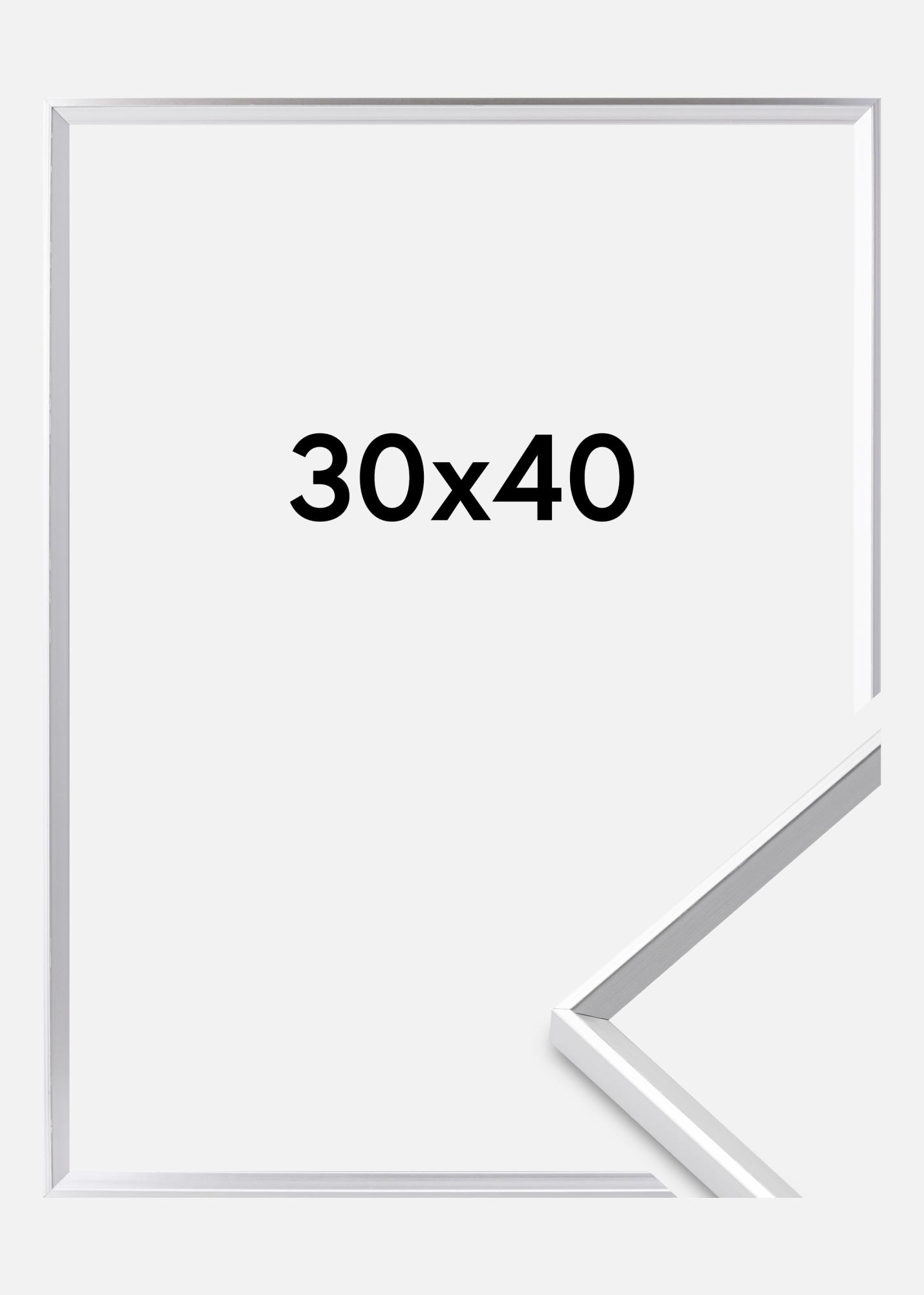 Ce cadre polyvalent est disponible en plusieurs tailles, mais cette variante mesure 30 x 40 cm et convient parfaitement à la plupart des environnements de décoration intérieure. Que vous souhaitiez créer un mural photo personnalisé ou simplement accrocher une seule oeuvre d'art, ce cadre argenté est un excellent choix.