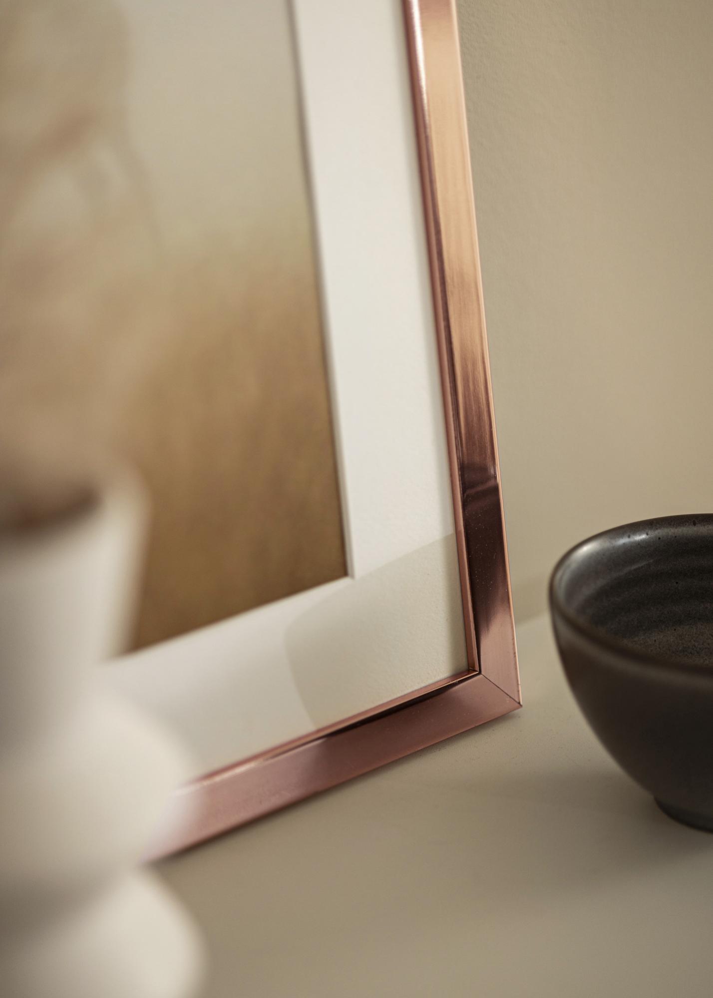 La finition couleur or rose confère une sensation luxueuse et la surface métallique a une douceur qui crée des variations subtiles de profondeur de couleur selon l'angle de la lumière. Cela fait du cadre non seulement un complément à votre photo, mais également une partie intégrante de la décoration de votre maison.