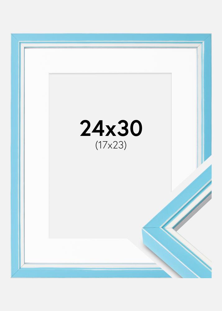 Cadre Diana Bleu Clair 24x30 cm - Passe-partout Blanc 18x24 cm