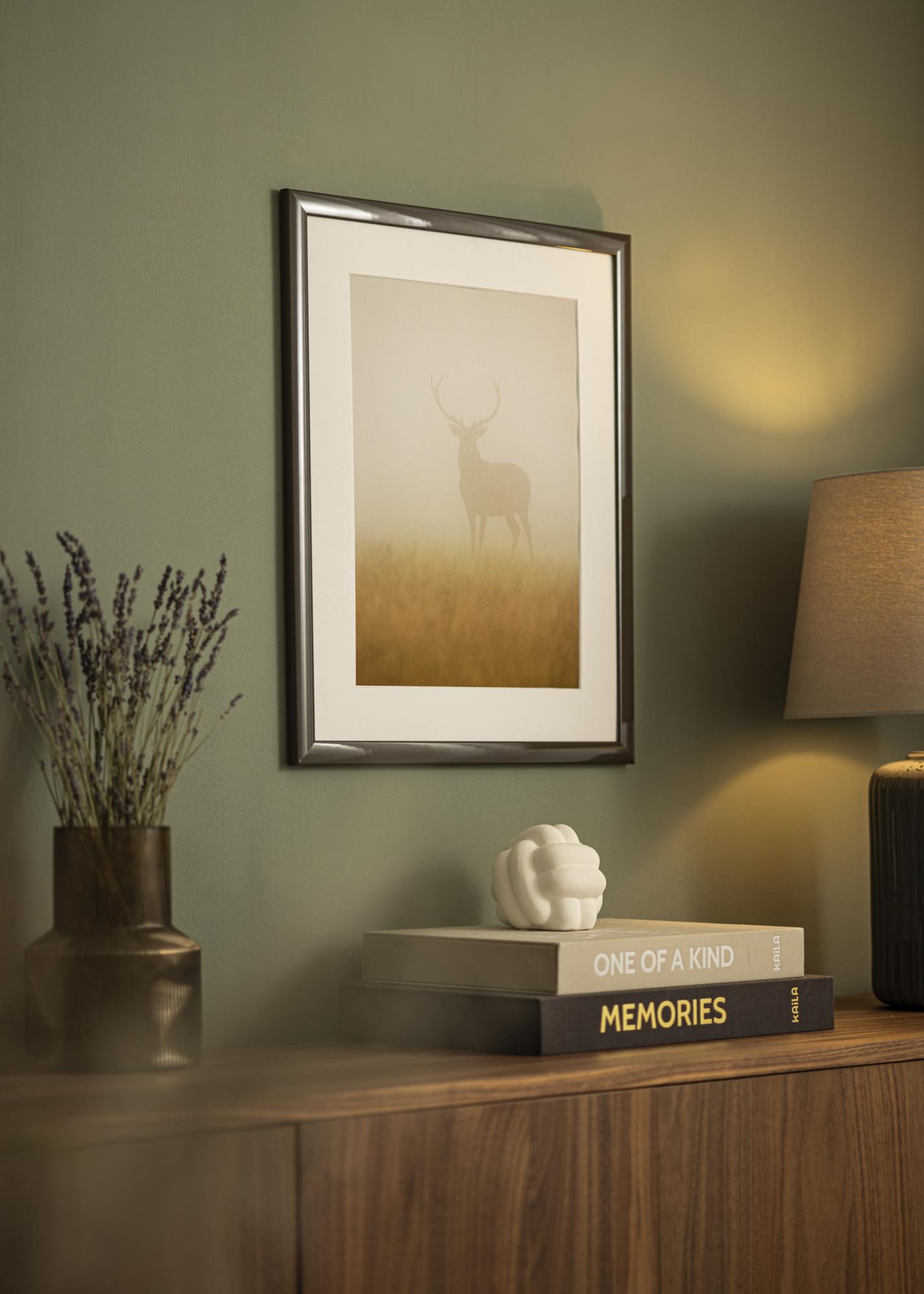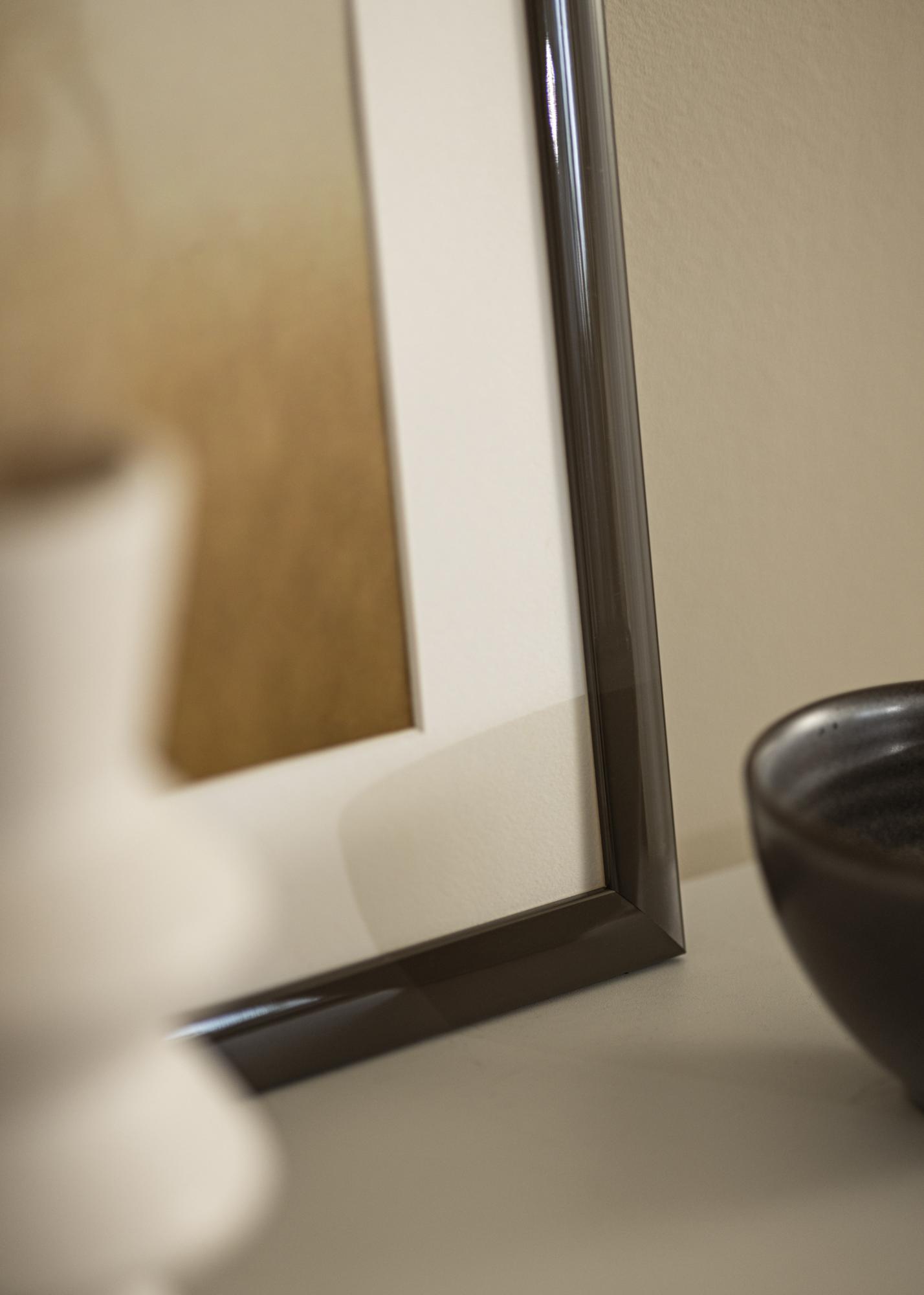 Cadre Dorset Gris Foncé est un cadre photo sur mesure fabriqué dans notre propre atelier de cadre, ce qui vous offre la possibilité d'obtenir un cadre qui correspond parfaitement à vos besoins. Avec sa couleur gris foncé et sa finition brillante, ce cadre offre une surface élégante et réfléchissante qui peut vraiment mettre en valeur vos photos ou œuvres d'art. Le vernis lisse renforce la profondeur de la couleur et crée une expression vivante qui capte la lumière de manière unique.