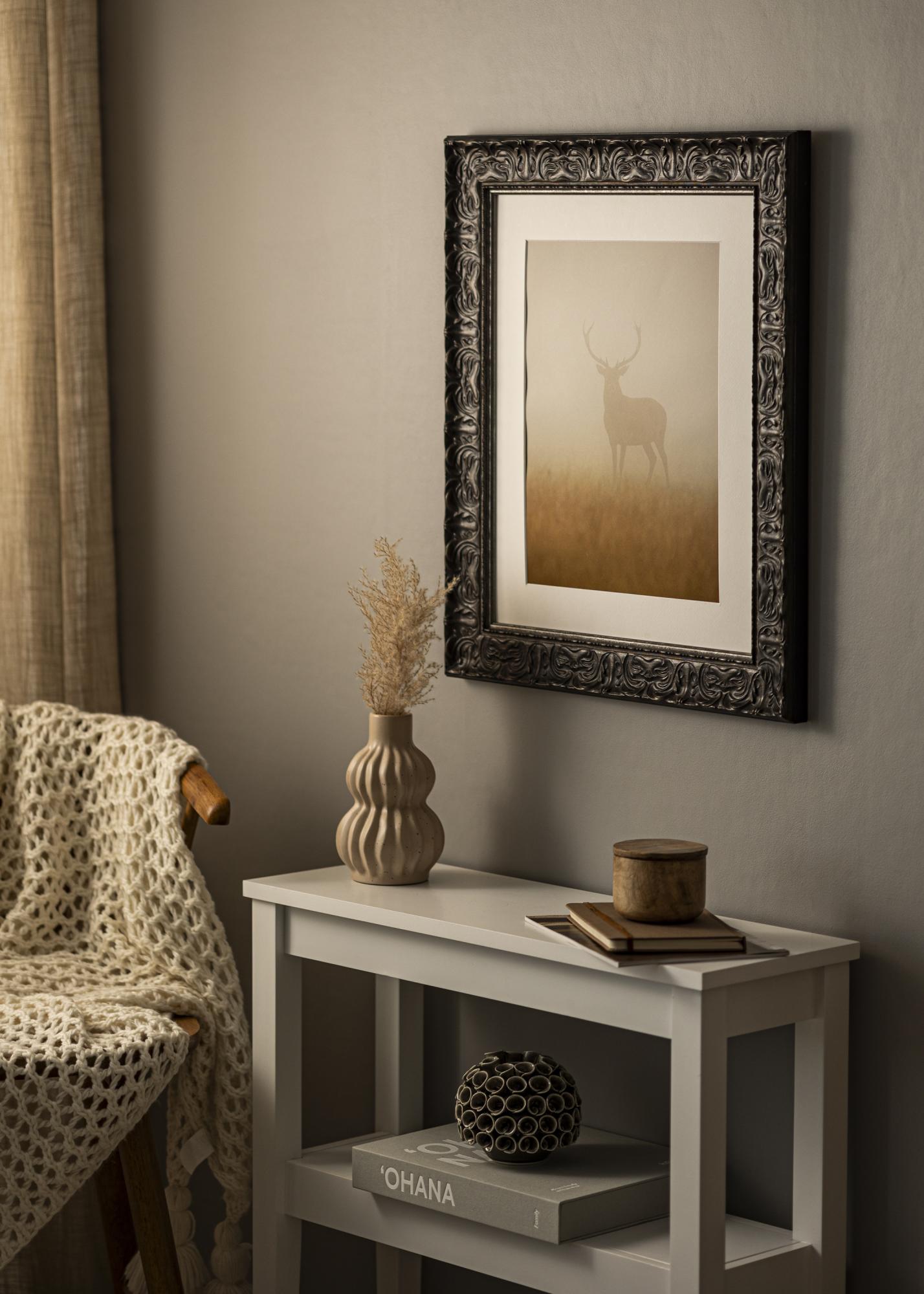 Avec une large baguette d'image de 70 mm et une profondeur de 35 mm, le cadre Durham Noir offre un encadrement robuste et impressionnant. Fabriqué en pin, ce cadre combine durabilité et esthétisme, ce qui en fait un excellent choix pour les intérieurs modernes comme traditionnels. Le design détaillé du cadre apporte une touche unique qui attire l'attention sans submerger le sujet.