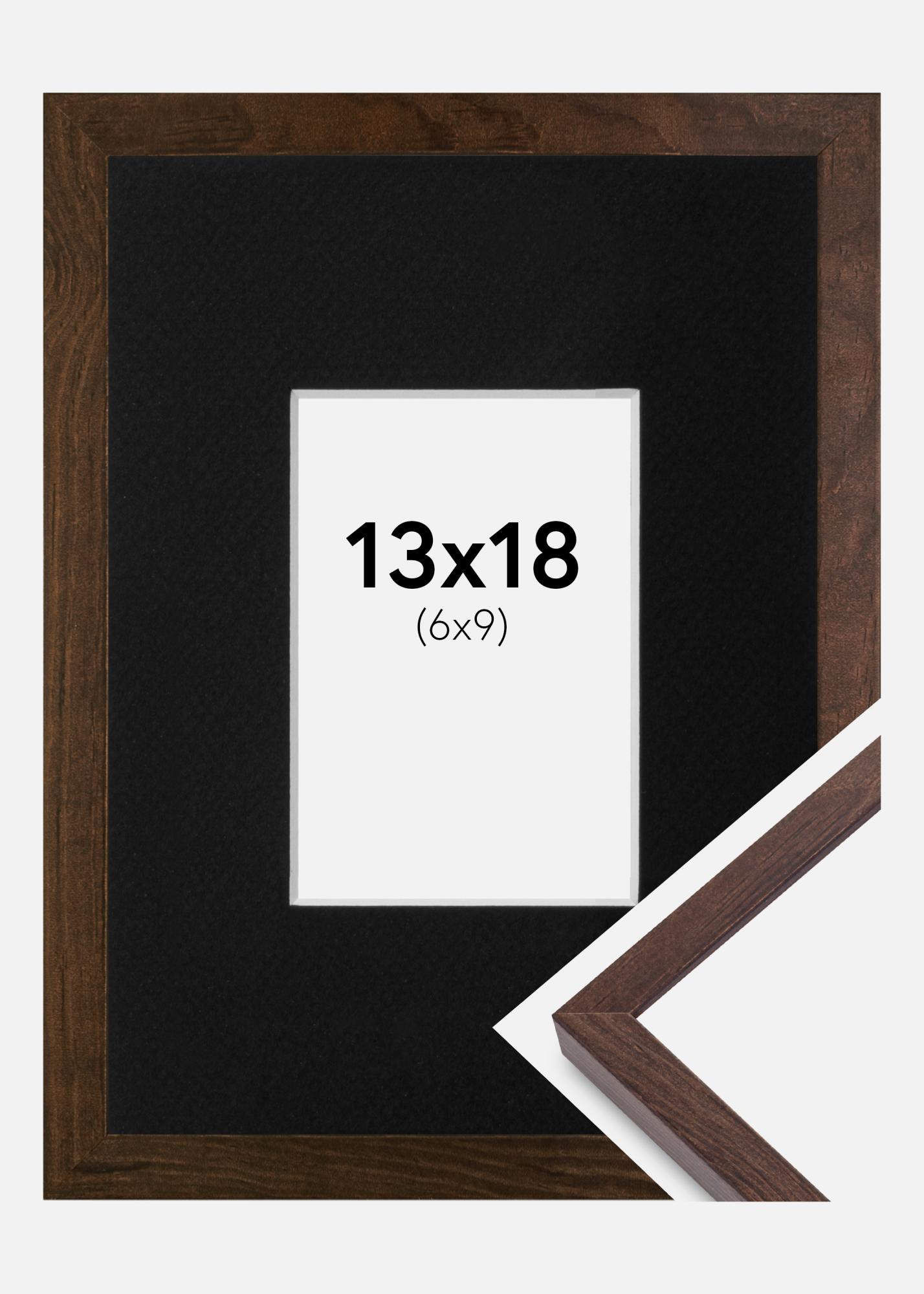 Cadre E-Line Noyer 13x18 cm - Passe-partout Noir 7x10 cm