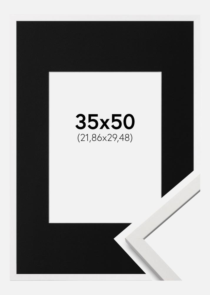 Forfait comprenant un cadre photo et un passe-partout noir inclus. Sur l'image du produit vous pouvez voir les dimensions du cadre (indiquées en gras) et les dimensions intérieures du passe-partout (indiquées entre parenthèses). Veuillez noter que les dimensions intérieures du passe-partout doivent toujours être inférieures de 1 cm à la taille de l'image souhaitée.
