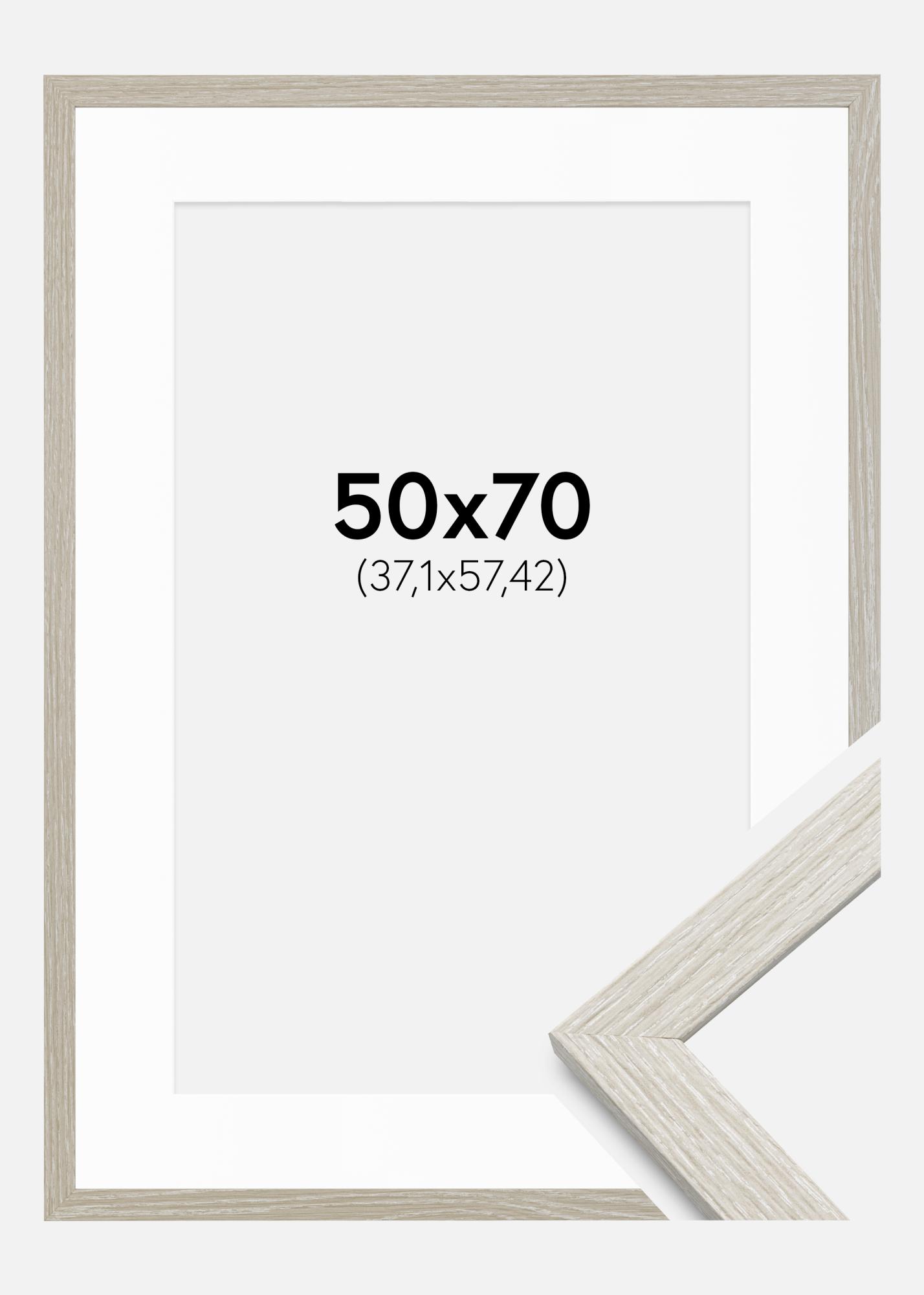 Cadre Stilren Chêne Gris Clair 50x70 cm - Passe-partout Blanc 15x23 inches